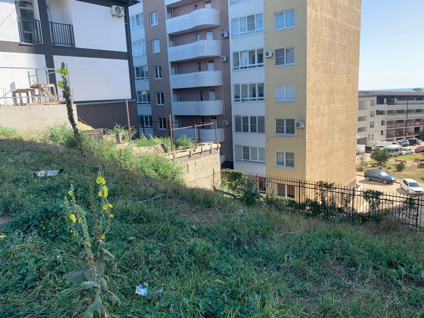 расположен на второй линии от Черного моря.рядом все застроено,гостиничные комплексы,гостевые дома.