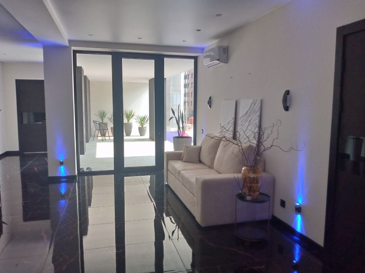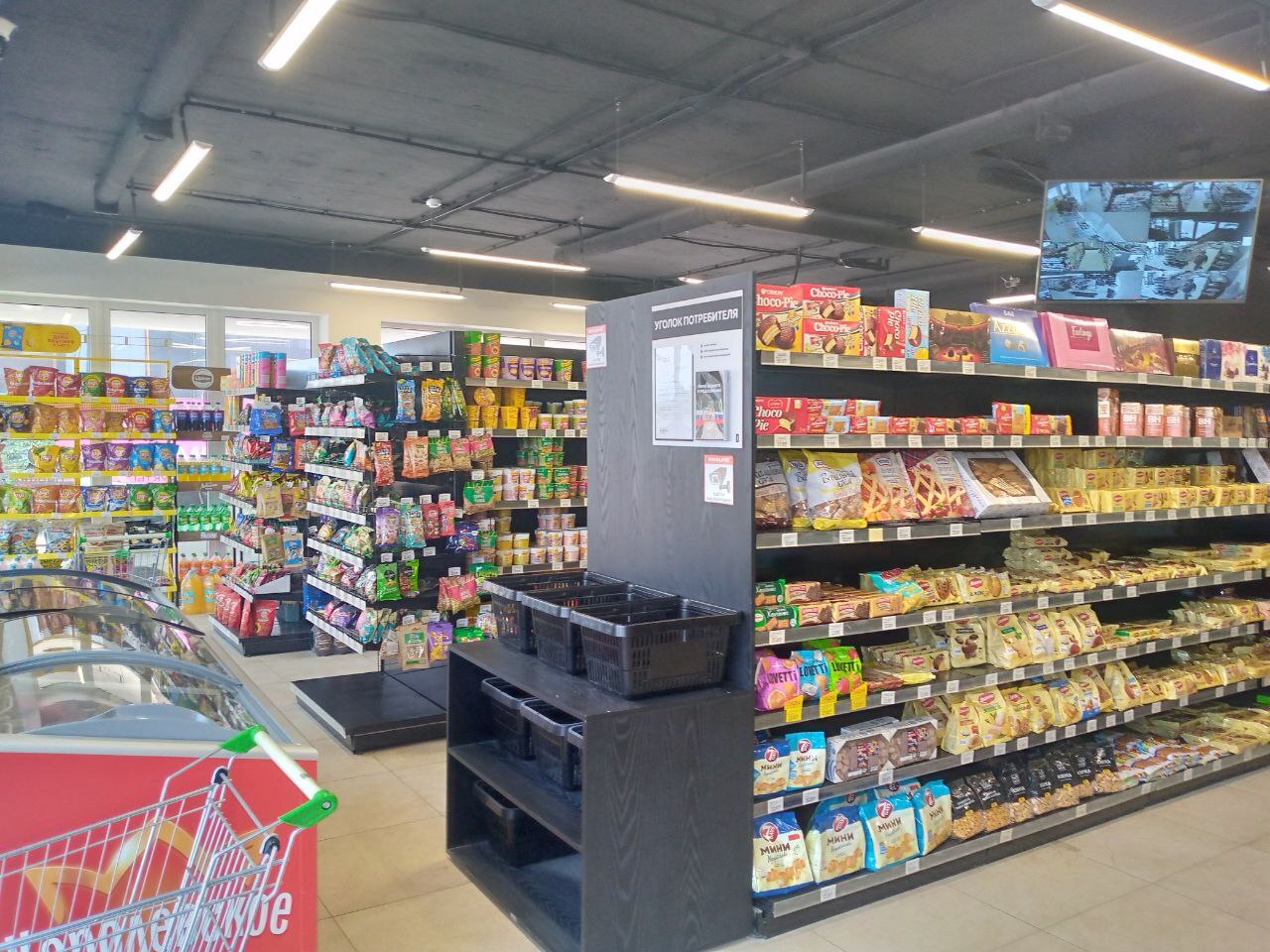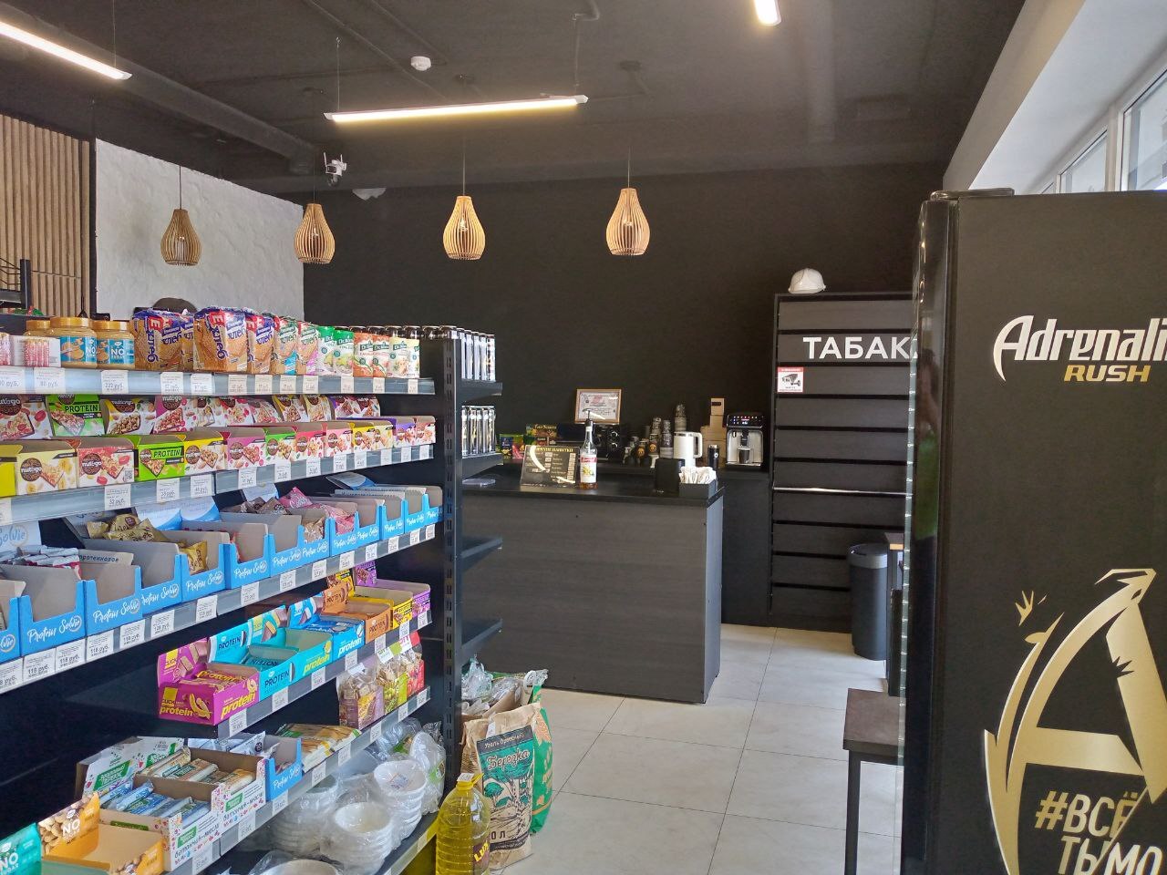 На первом этаже размещается мегамаркет и кофейня