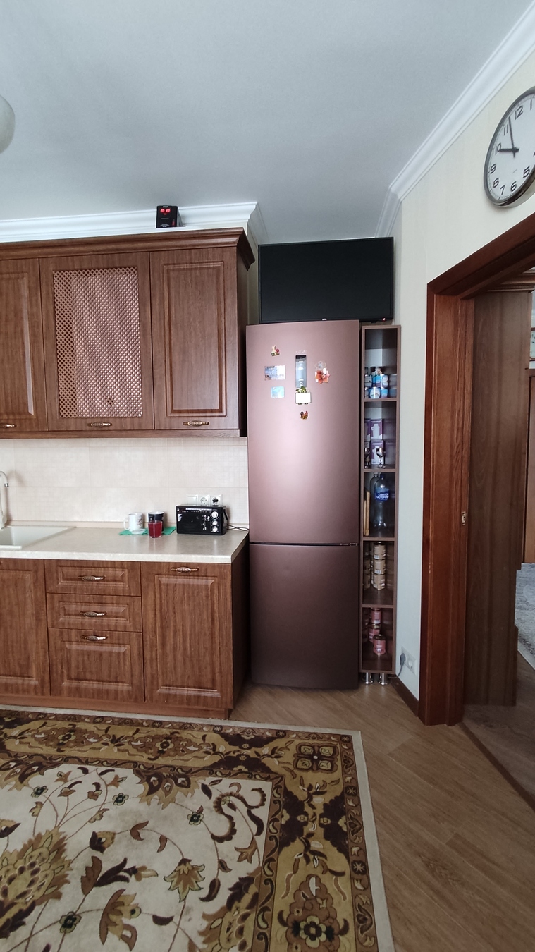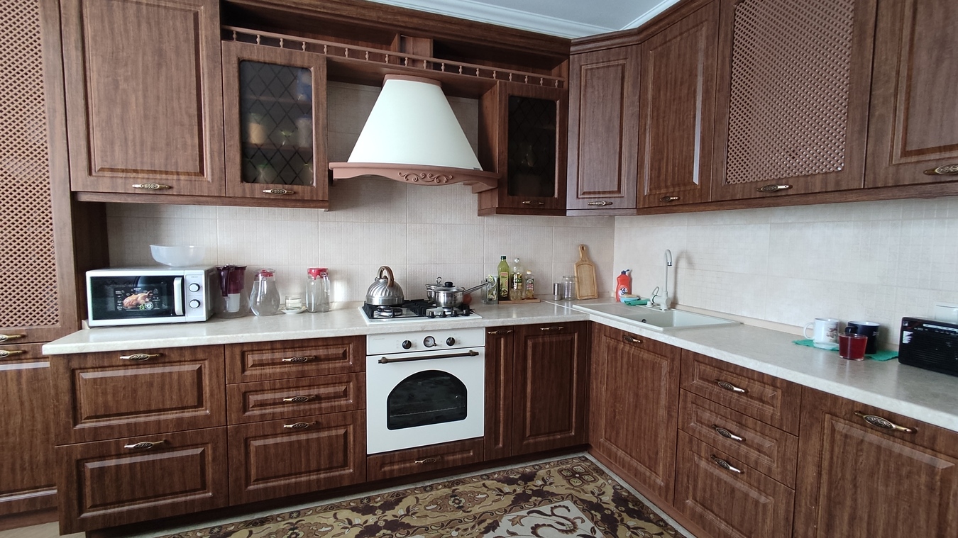 Лоджия и балкон застеклены и объединены с жилыми комнатами, имеется зона для гардероба с освещением, большая просторная кухня 14 кв.м. Установлено газовое оборудование и газовый котел.