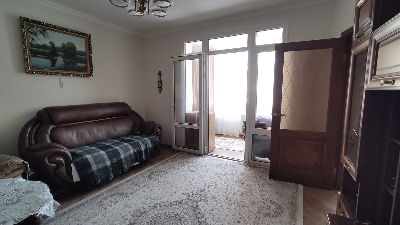 Квартира с видом на улицу и двор, расположена в районе Южного рынка, хорошая транспортная доступность, до центрального пляжа 15 минут пешком.
