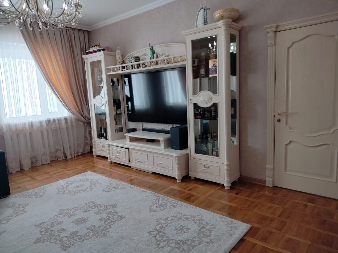 Гостиная с паркетным полом и дорогой плиткой станет местом, где вы сможете наслаждаться отдыхом и проводить время с друзьями и близкими.