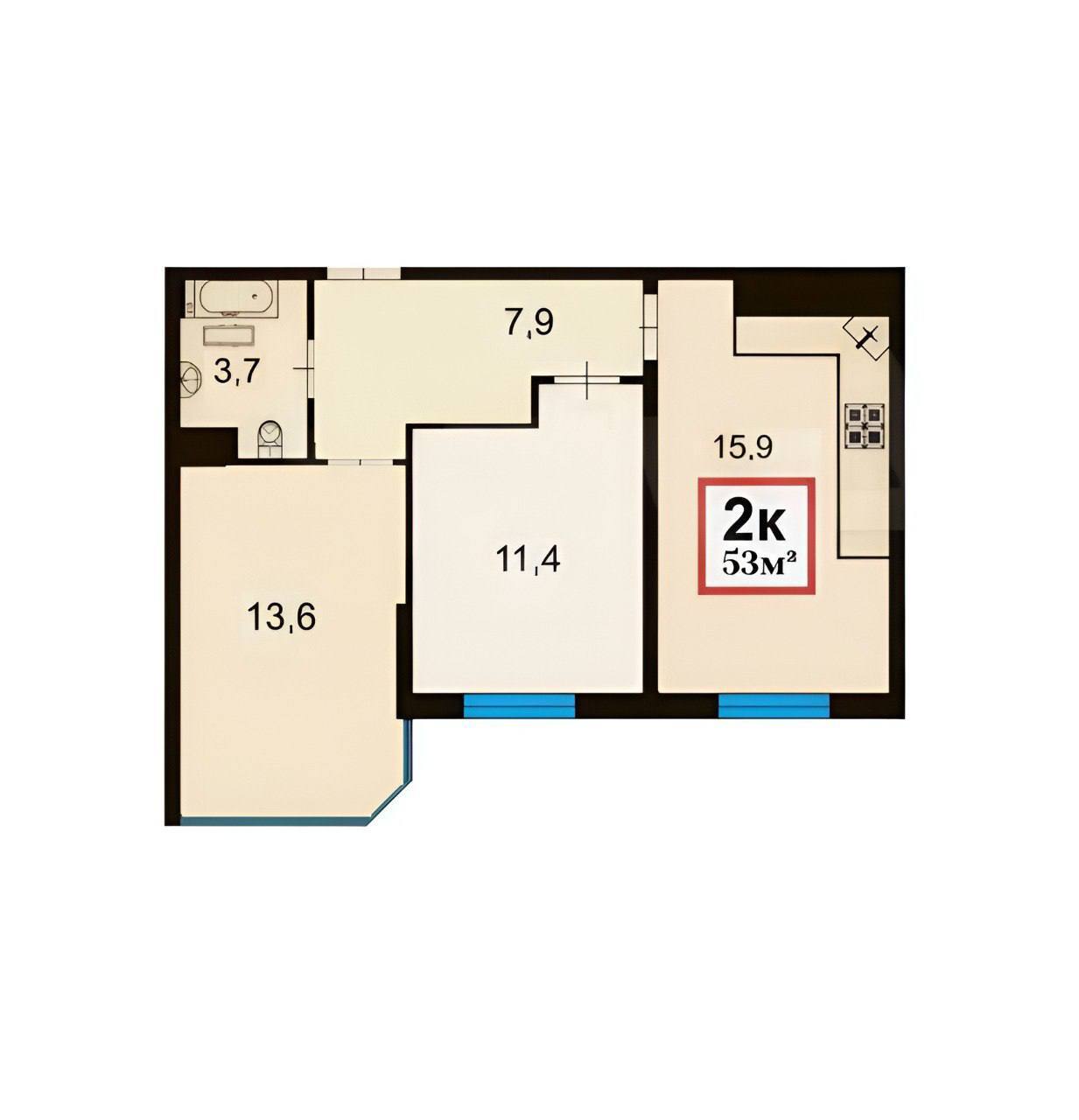 Представляем вашему вниманию прекрасную возможность приобрести современную и стильную квартиру в популярном жилом комплексе «Чёрное море».Площадь: 53 м²