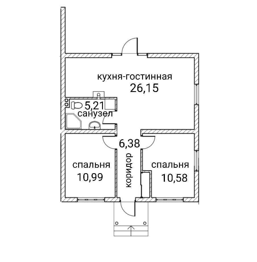 построен 2022 году, две спальни, кухня гостиная, санузел и прихожая.