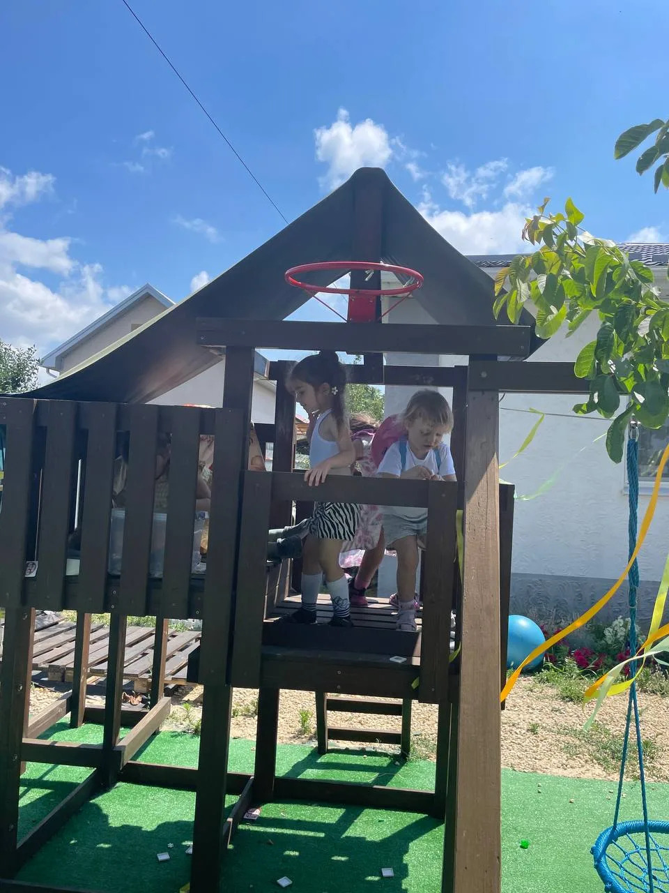 На территории участка расположены плодовые деревья,сауна,детская площадка,в летний период выставляем каркасный бассейн.