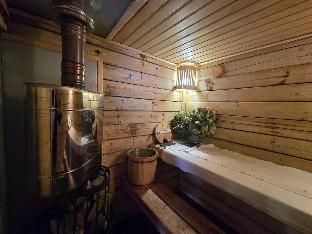 Высокие потолки,толстые стены утепленные ,кораед.
