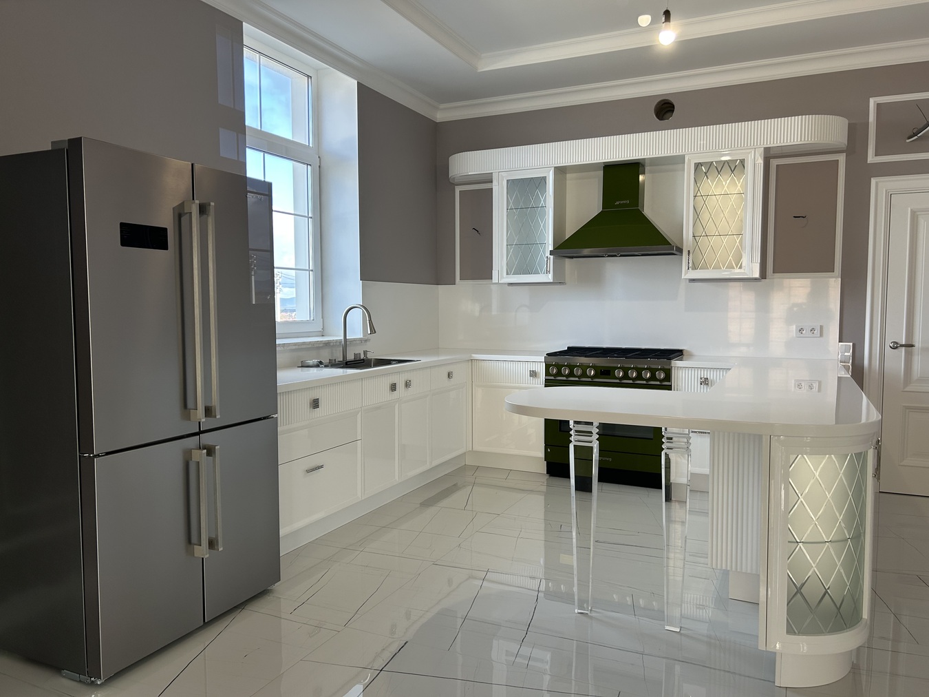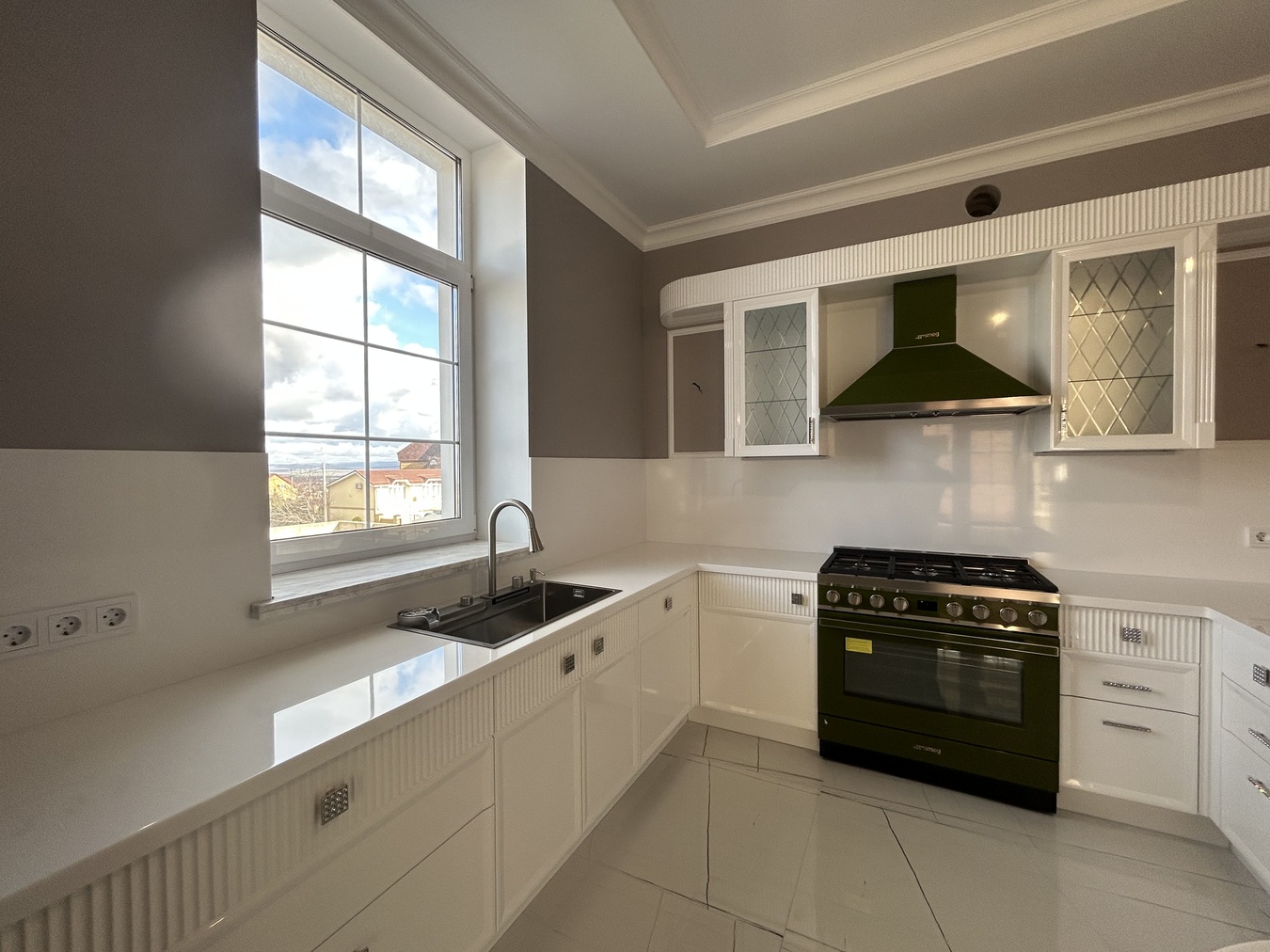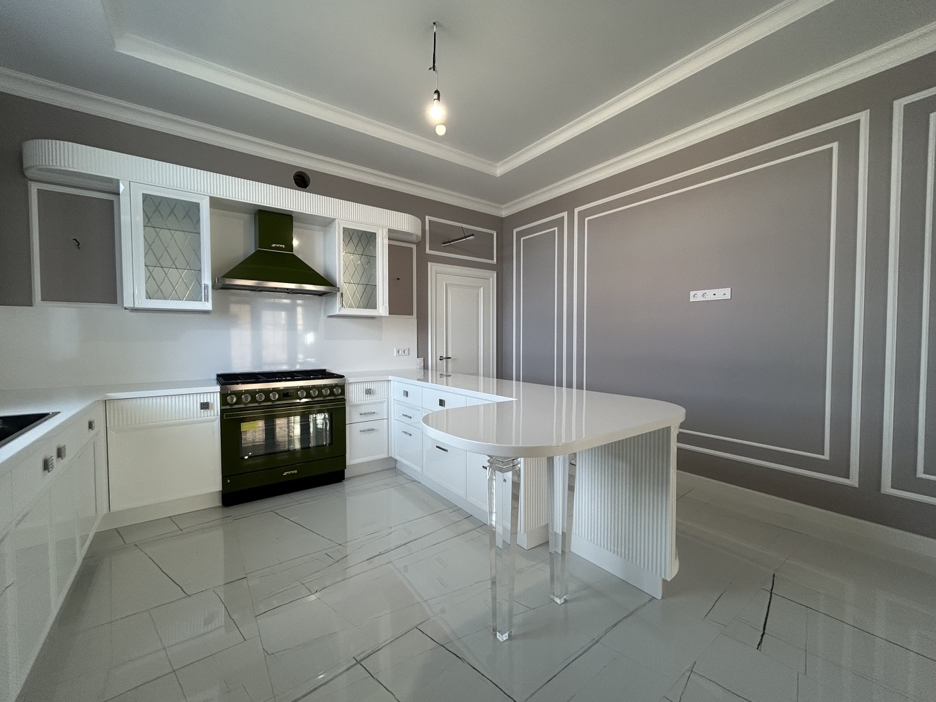 Готовность объекта-полностью завершены отделочные работы. Даже установлен кухонный гарнитур, включая встроенную технику. Использовались только лучшие премиальные материалы, производства Испании и Германии.