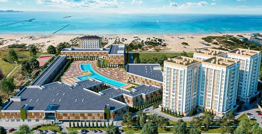 Продается квартира (апартаменты) пл. 45,5 м2, с готовым ремонтом, в 100 м от моря. Первая линия, собственный песчаный пляж. Из окон квартиры открывается красивый вид на море с верхнего этажа. Два собственных бассейна с морской водой, фитнес клуб. Территория комплекса огорожена, предусмотрено место для гостевой парковки. Детские и спортивные площадки. Комплекс расположен в курортном месте, в шаговой доступности: аквапарк (через дорогу), аттракционы для маленьких и взрослых, кафе и рестораны, банкоматы, магазины и прочее. Остановка общественного транспорта. К достоинствам комплекса относится расположение на одной территории с современным курорт-отелем «Мартель». Жители апартаментов получают доступ к услугам спа-салона, фитнес-центра, со скидкой 50%, ежемесячной платы нет. Управляющая компания расположена в доме на 1 этаже (ресепшн, охрана, прачечная, уборка, услуга сдачи в аренду апартаметов по договору). Квартира подходит под ипотеку. Срок сдачи март-апрель 2019 года. Заселение до начала курортного сезона. Отличный вариант как для проживания, так и для сдачи.
