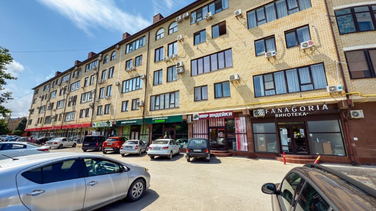 В доме находятся магазины, аптека, зоомагазин, мясная лавка. Остановка рядом с домом.