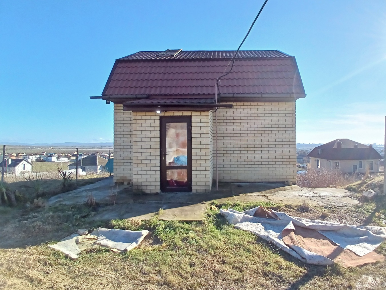 · 1-й этаж: Просторная кухня-гостиная (студия) с выходом на большой балкон. Главная "изюминка" дома — с этого балкона открывается живописный вид на Анапу и море! Также на этаже прихожая и отдельный санузел.