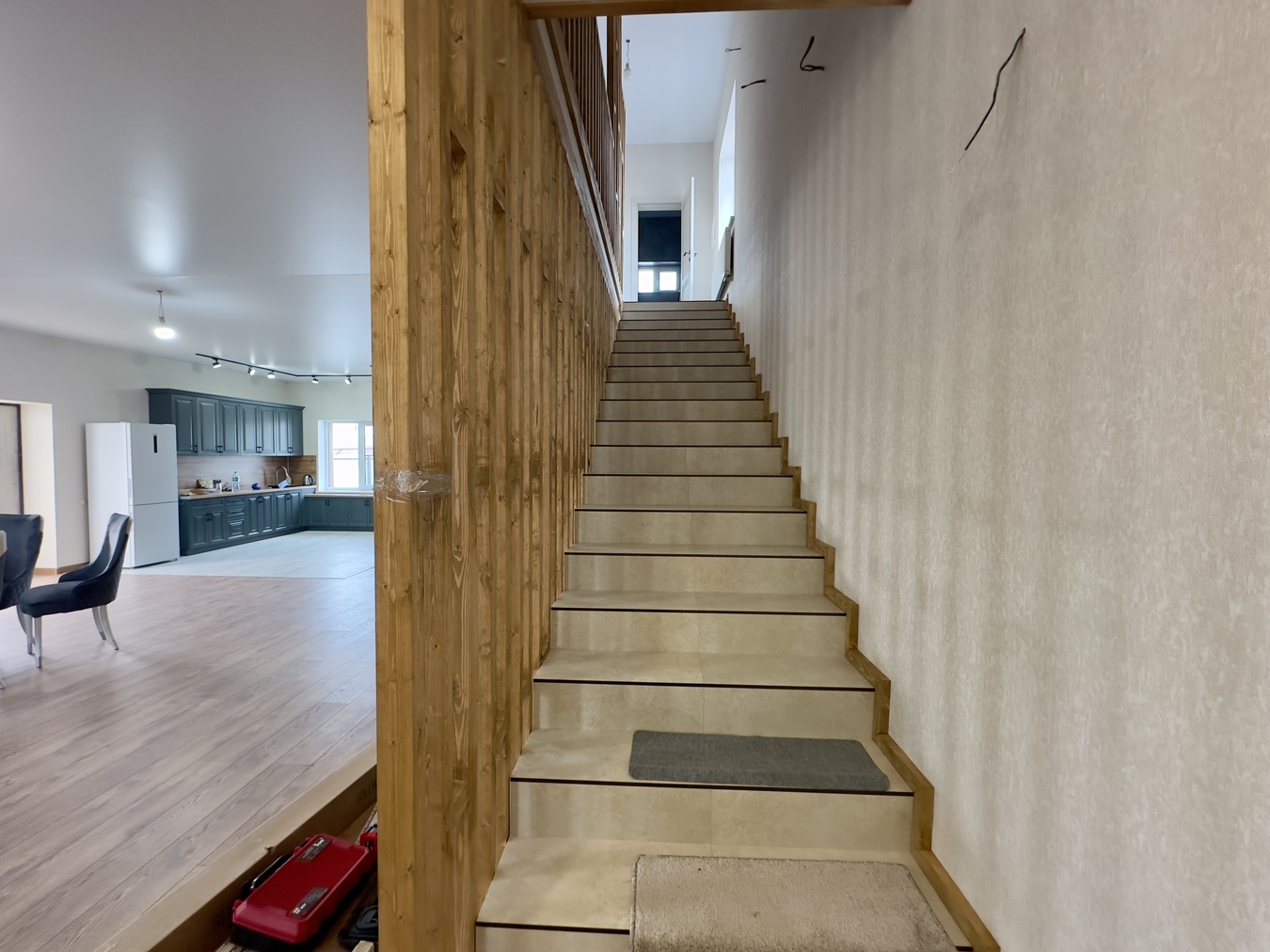 • Прочный и теплый: стены из блока + утепление пеноплексом + отделка «короед».