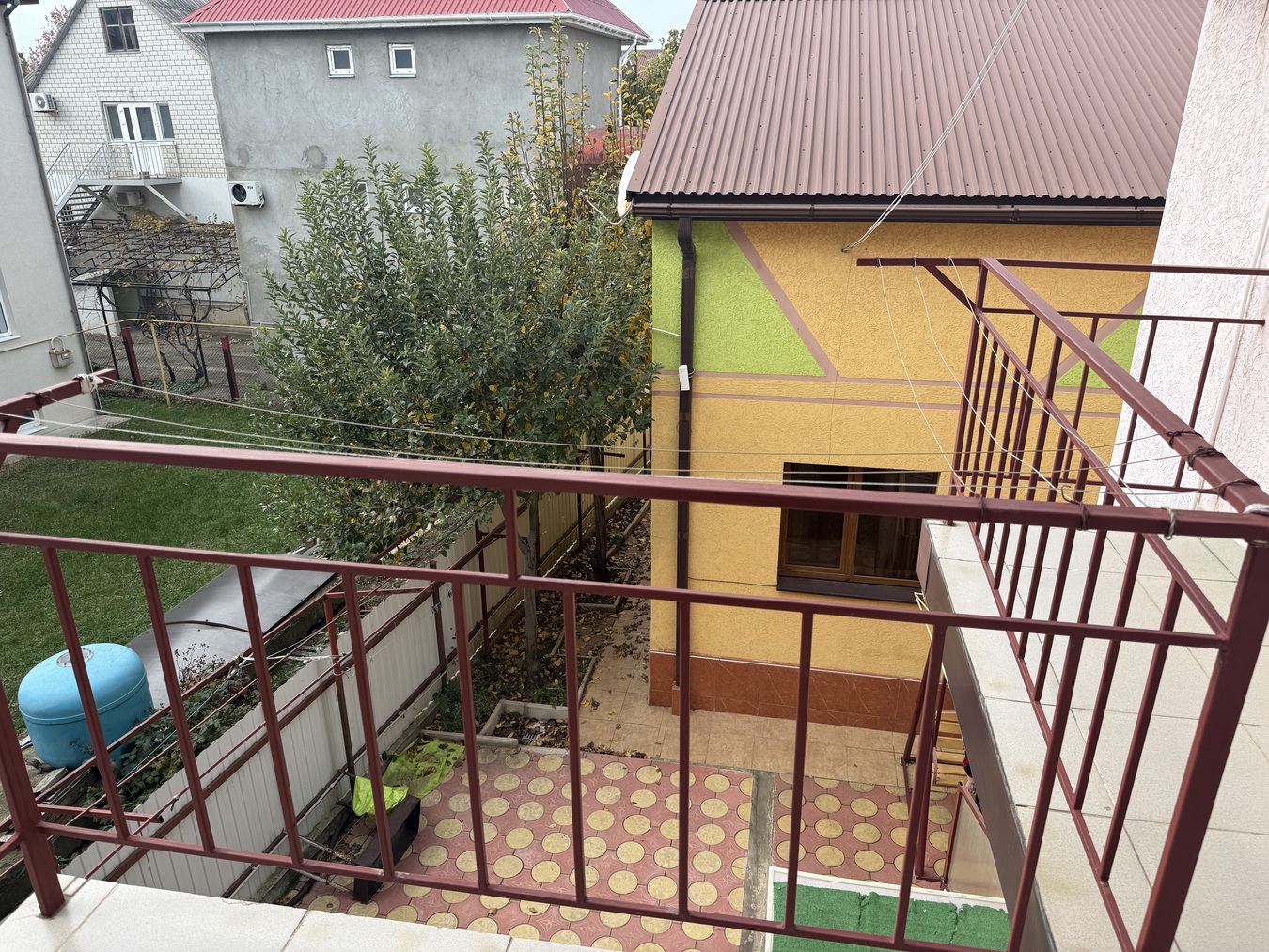 Небольшой двор очень уютно облагорожен, имеются детские качели, горки, цветы, парковка перед домом на три автомобиля.