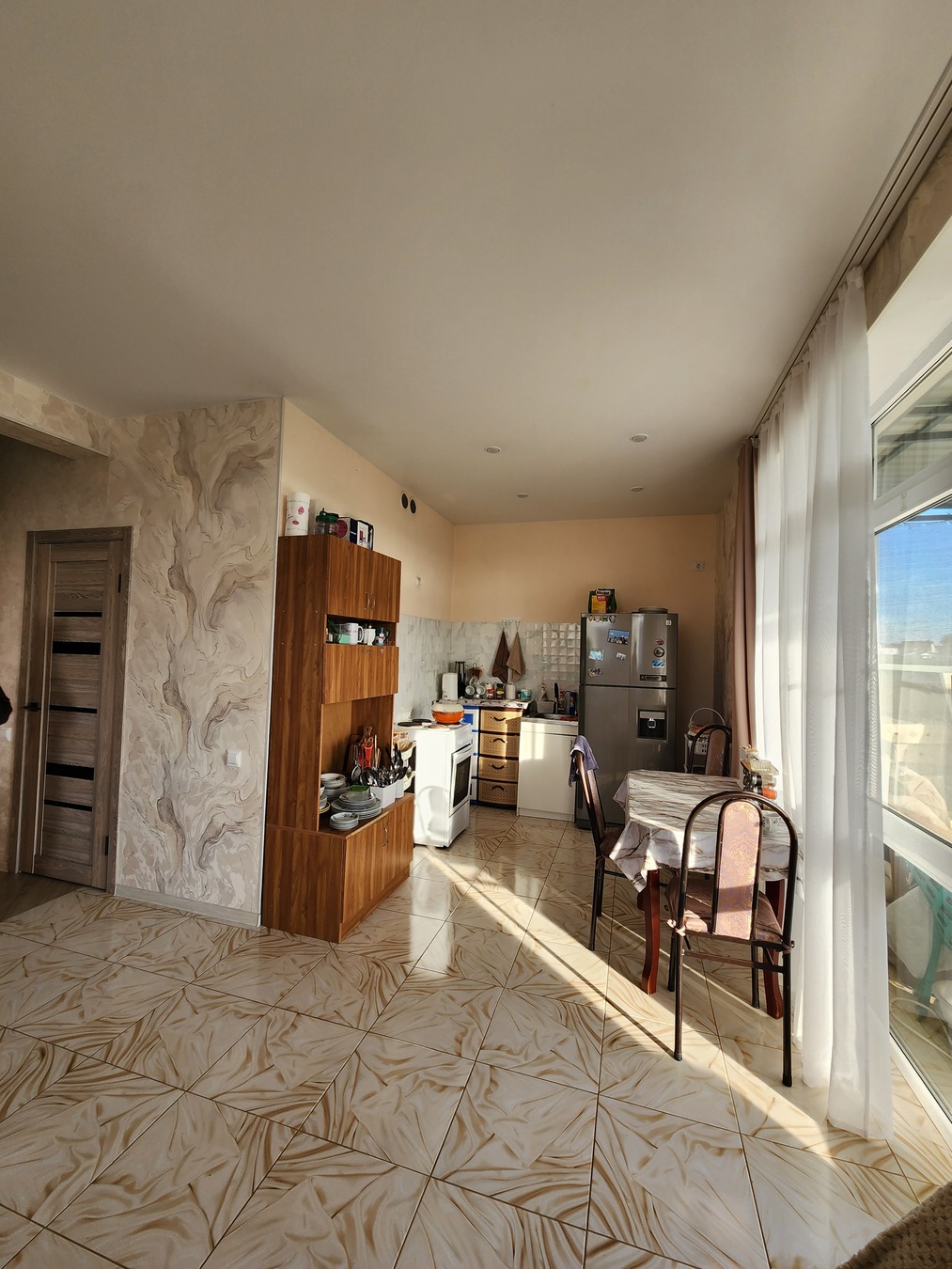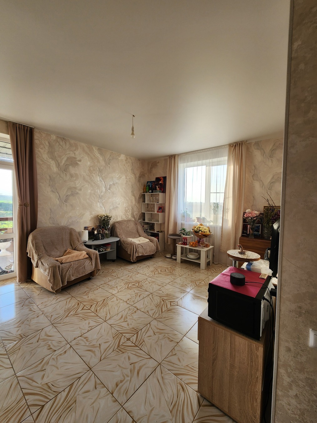 В доме выполнен качественный ремонт, на полу плитка.