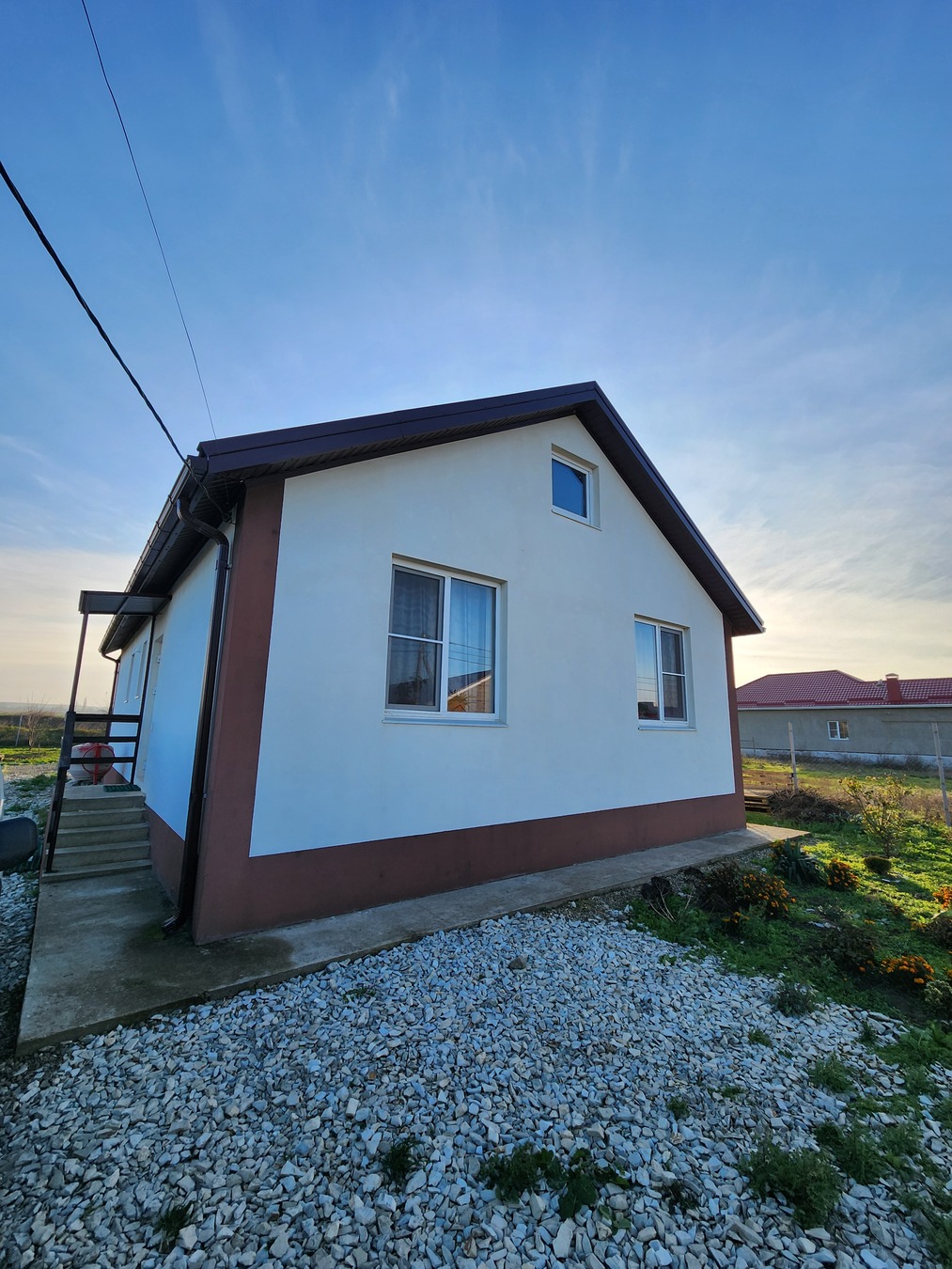 Дом состоит из трех комнат, бойлерная, сан.узел, гостиная, есть большая просторная терраса с замечательным видом.