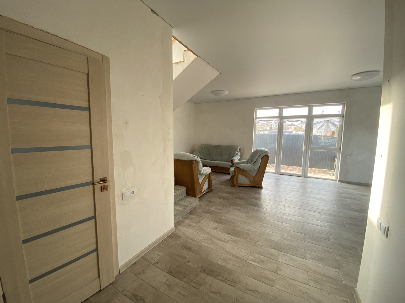 На 1 этаже просторная кухня гостиная, панорамное остекление, теплый пол. Сан узел, котельная.