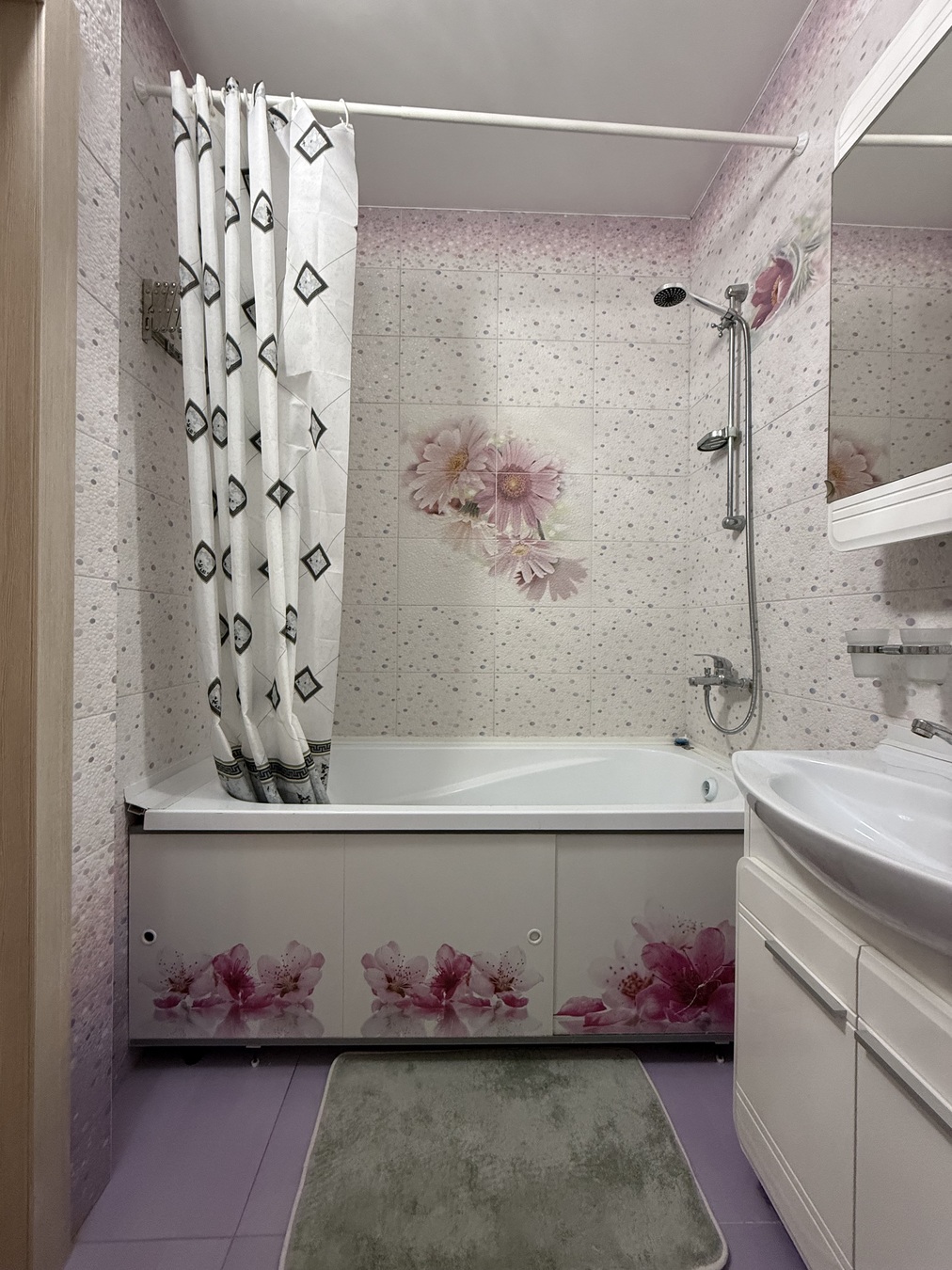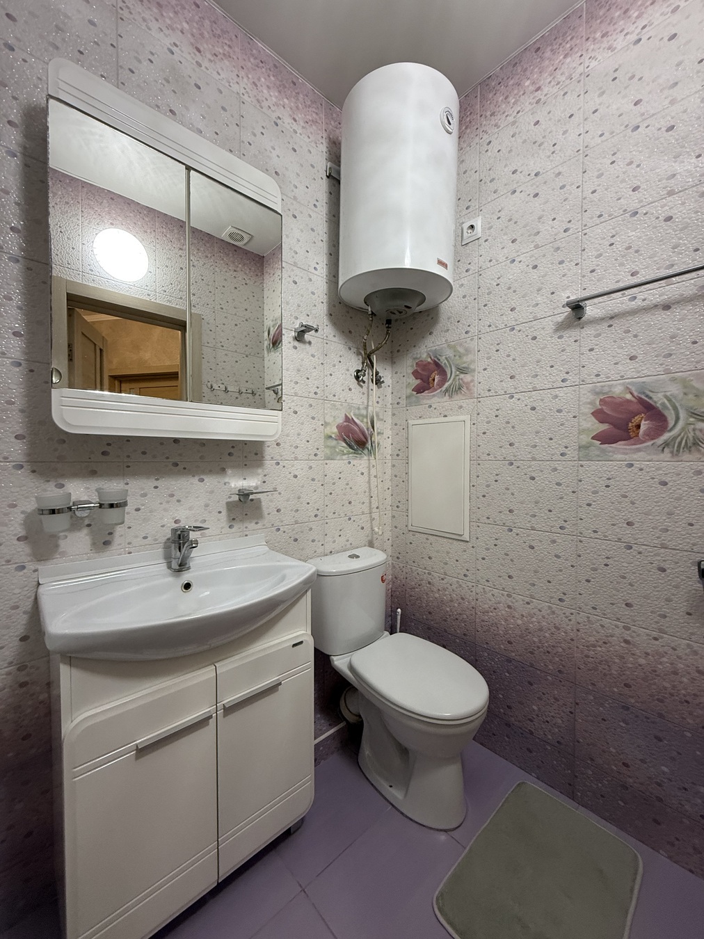 В санузле теплый пол.