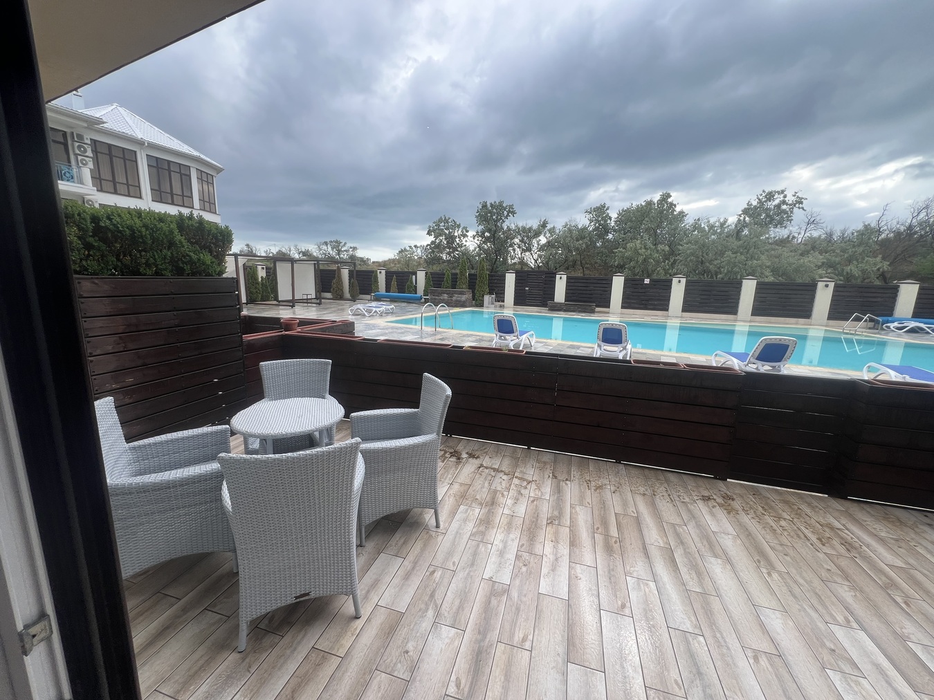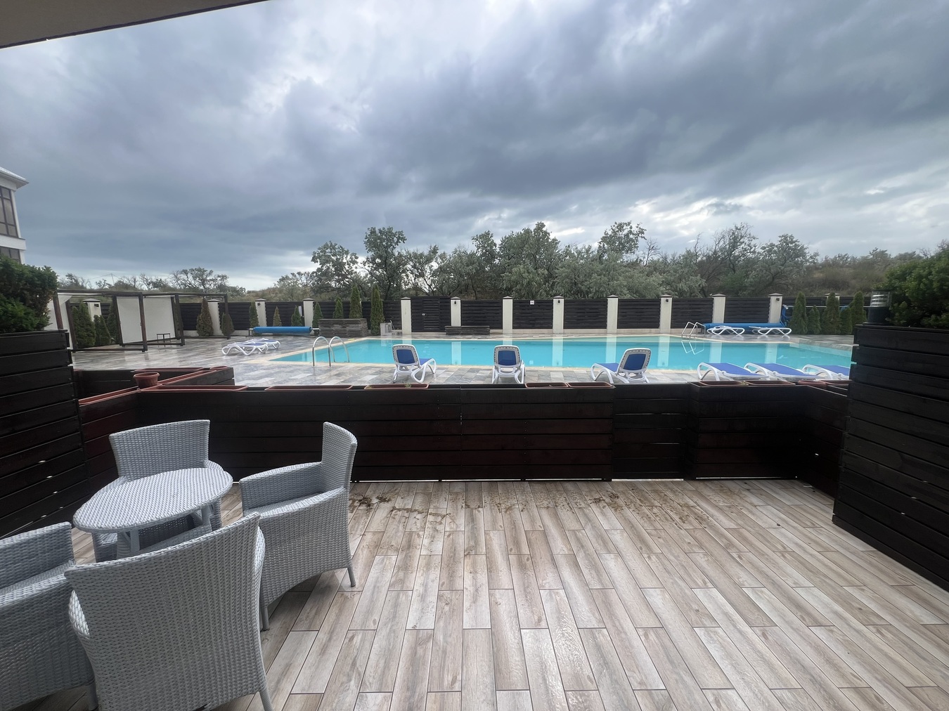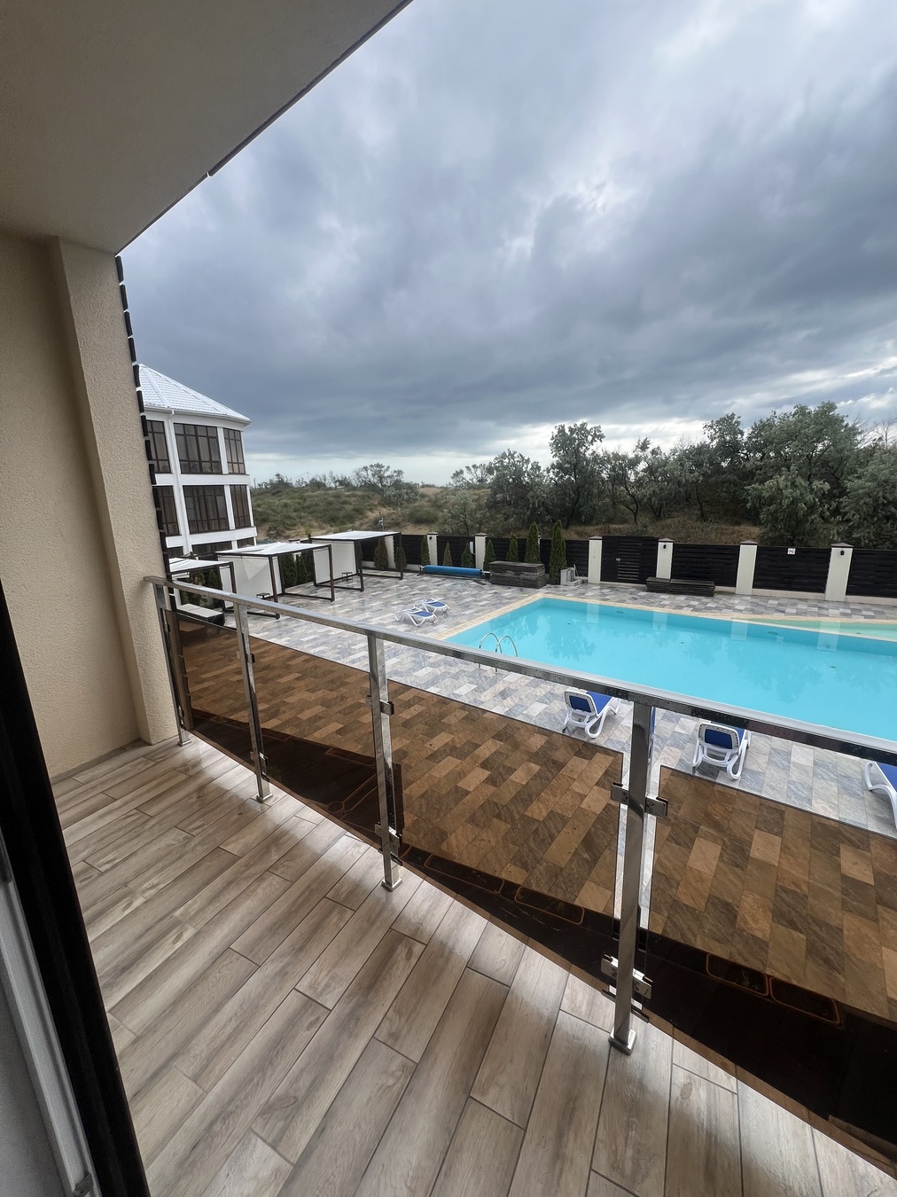 Есть общий бассеин 220кубов 18*8 без подогрева ,летняя общ кухня , мангальная зона ,беседки , шезлонги