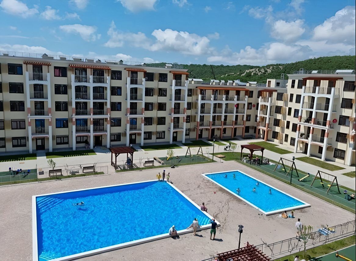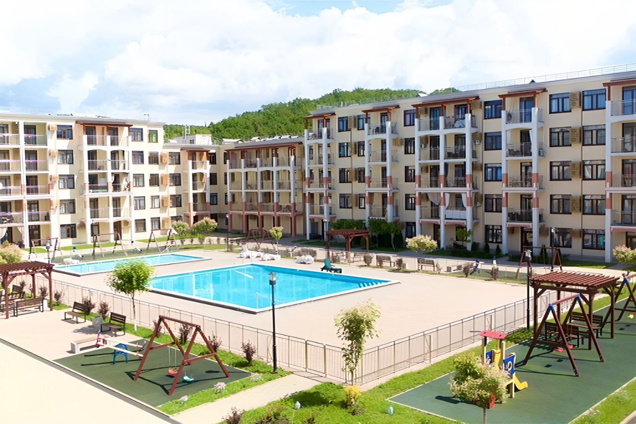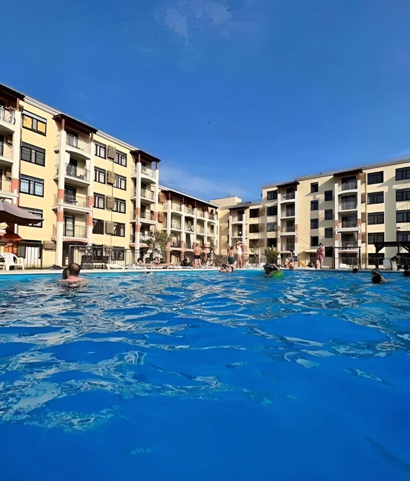 Во дворе дома два бассейна (детский и взрослый), спортивные и детские игровые площадки. Всего 5 бассейнов.