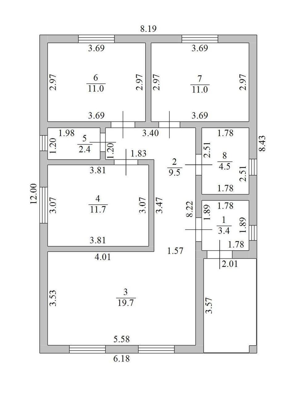 Кухня на первом этаже, и большой просторный зал, спальня на первом этаже и сан узел с постирочной. На втором этаже три раздельные спальни.