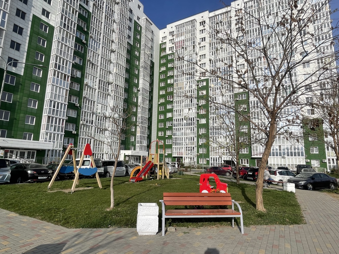 👌На территории достаточно парковочных мест , современные детские и спортивные площадки, зоны отдыха, видеонаблюдение.