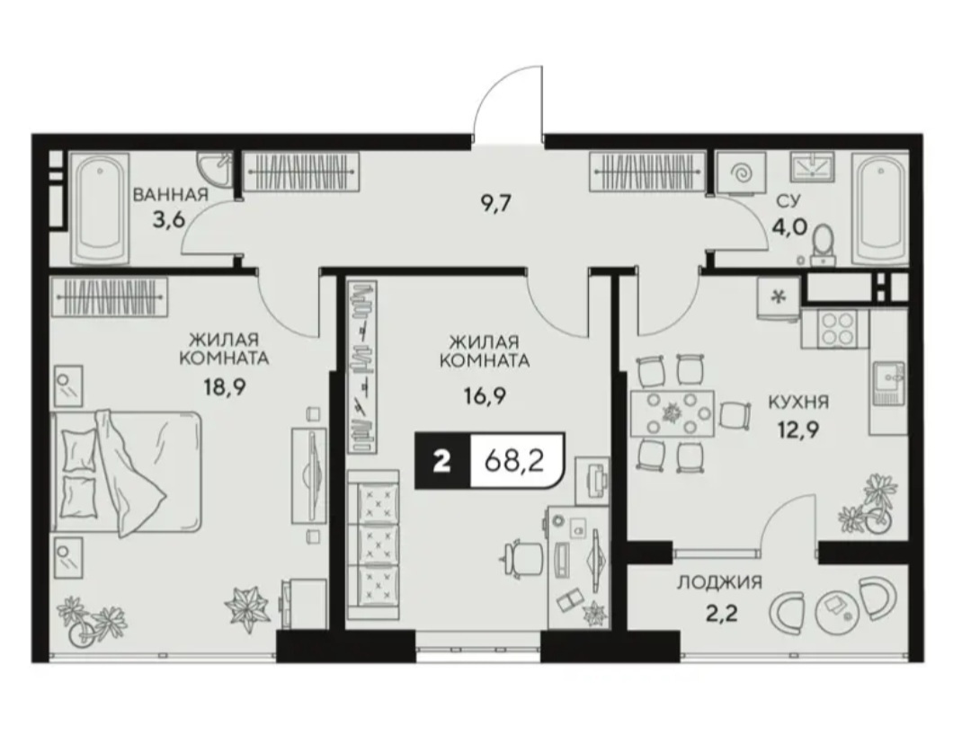 Представляем вашему вниманию идеальную евротрешку (68 кв. м) в одном из лучших ЖК Анапы — пространство, созданное для комфорта и света.