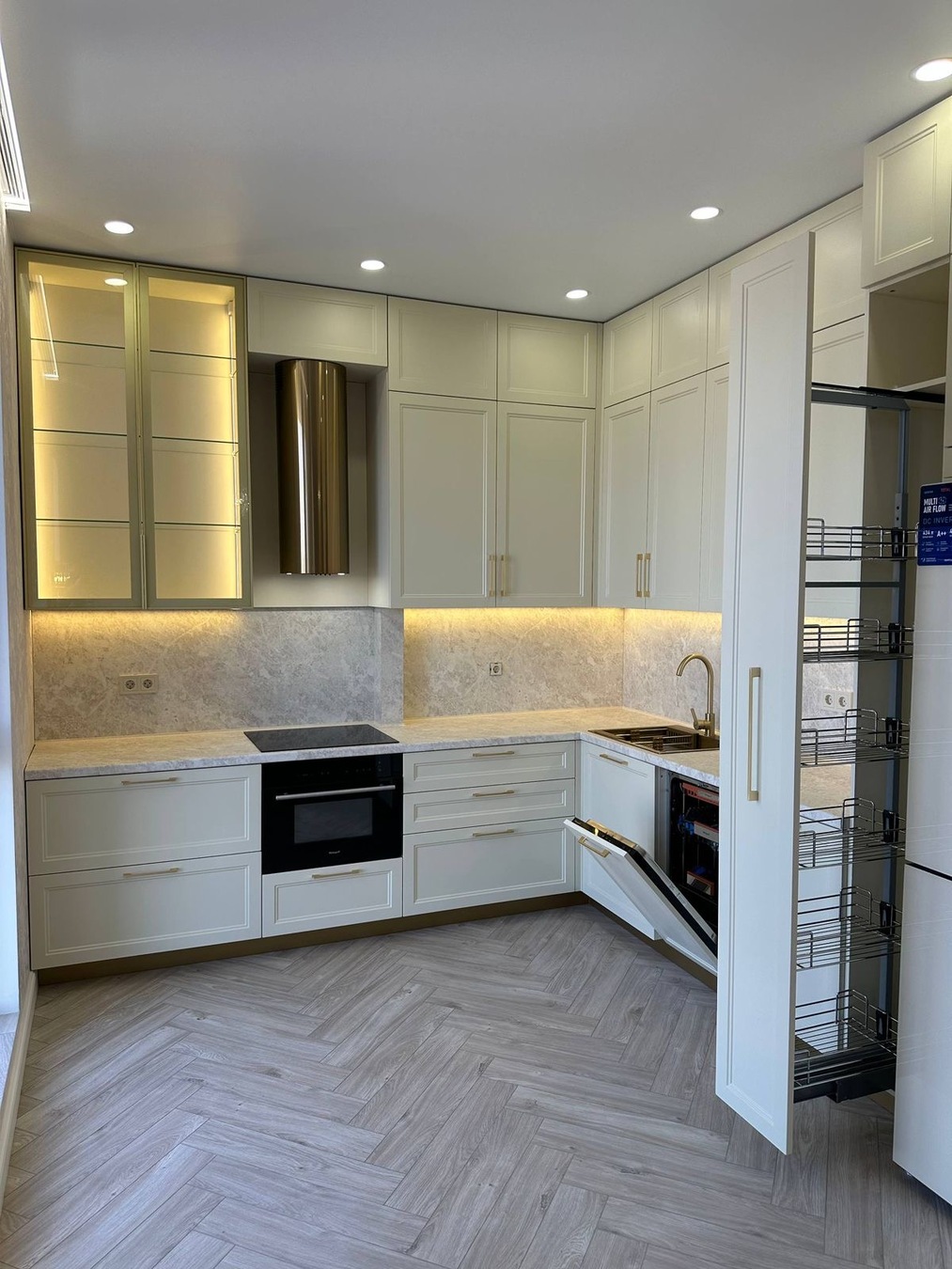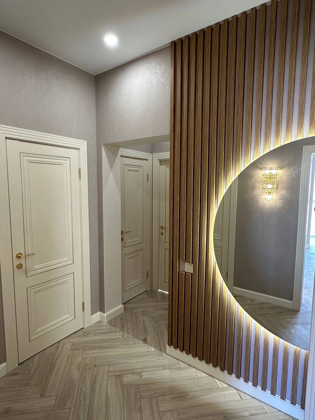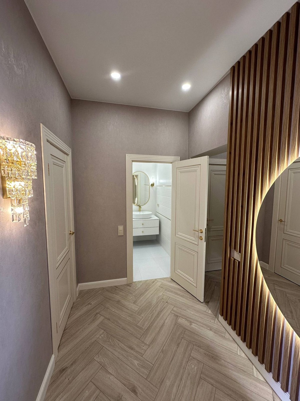 - Без радиаторов — тёплый водяной пол по квартире; отопление каждой комнаты включается отдельно (экономия и комфорт).