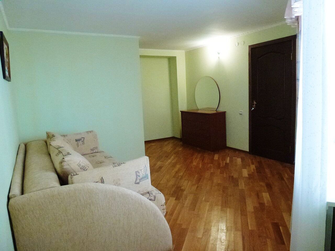 **Второй этаж** включает спальню с двухспальной кроватью и мебелью, а также отдельный туалет с душевой кабиной. Здесь же расположен общий зал с кожаным диваном и телевизором.