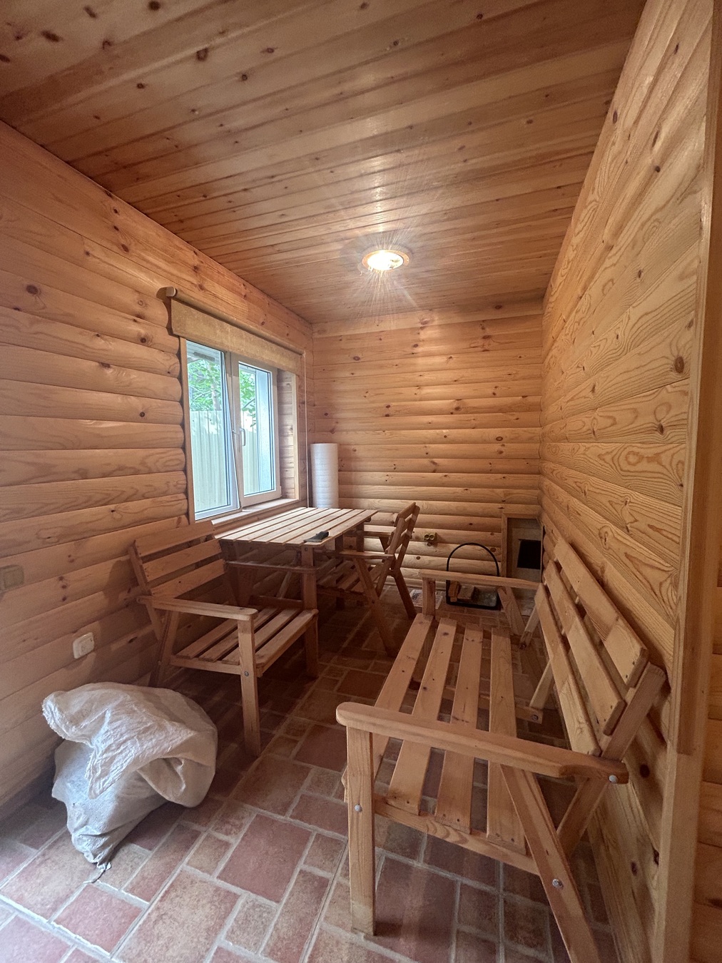 На территории дома имеется баня, оборудованная парной и душем. Вокруг бани предусмотрено место для установки летнего столика со стульями, где можно наслаждаться свежим воздухом.