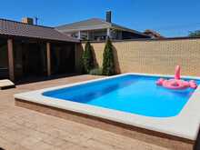 · Объект на участке: Стационарный бассейн. Площадь дома: 170 кв. м. Полностью готов для проживания. Выполнен дизайнерский ремонт. Продается полностью меблированным и с всей необходимой бытовой техникой. 4 комнаты: Можно организовать спальни, кабинет, гостевую комнату.