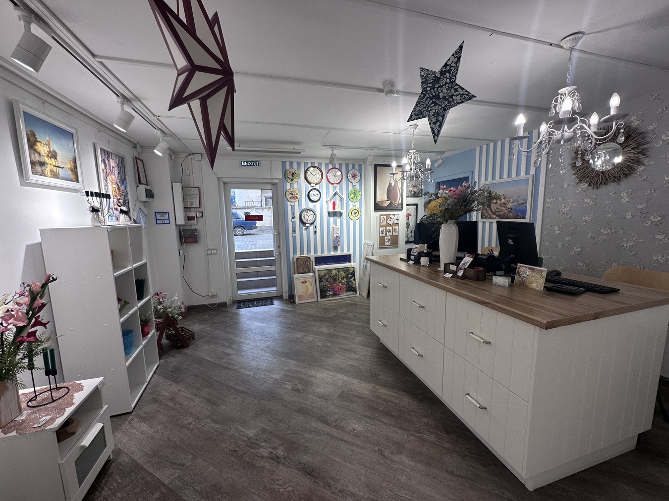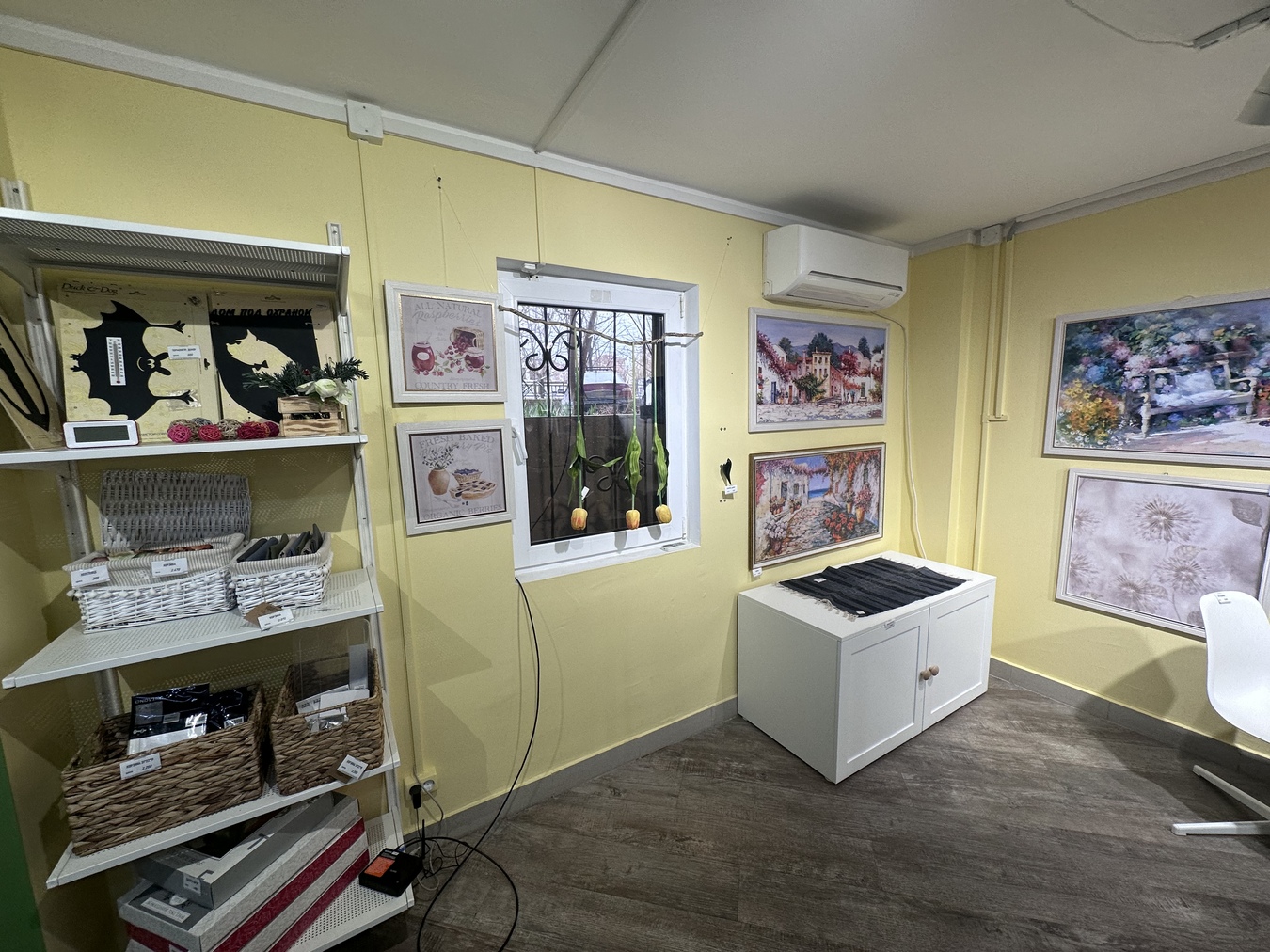 Есть кондиционер, подсобное помещение, имеются 3 окна в помещении.