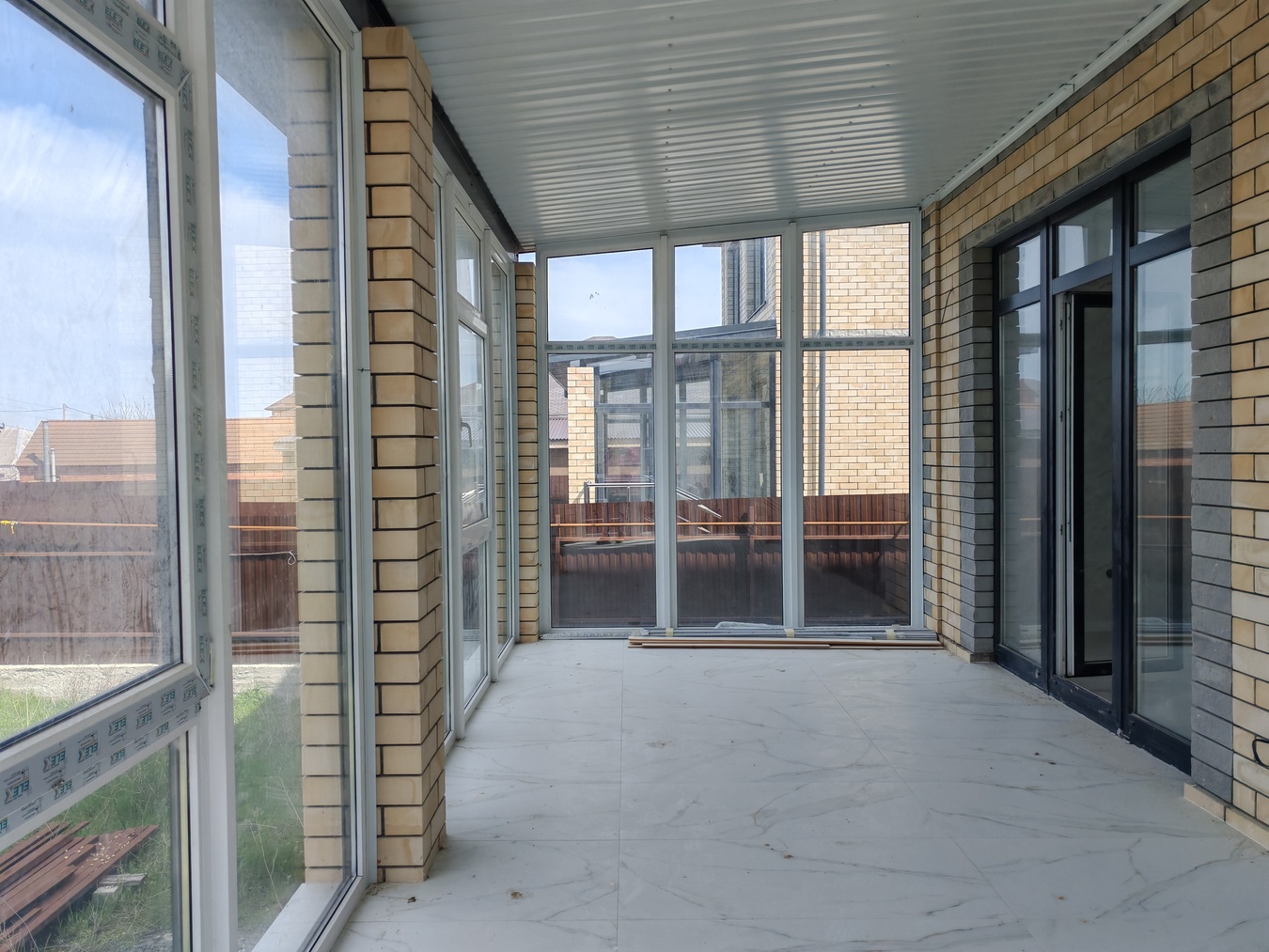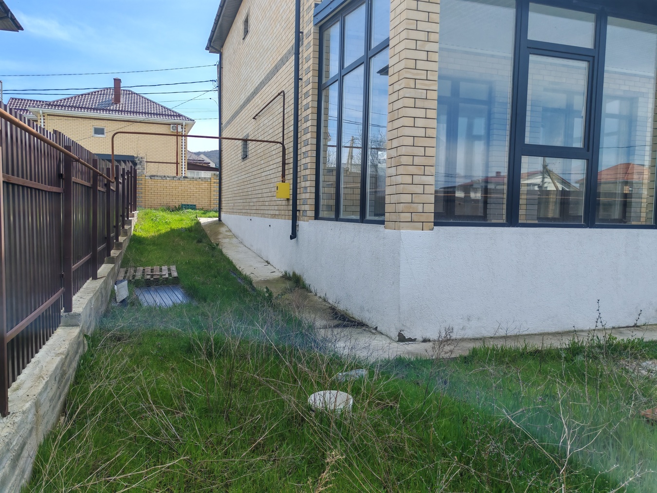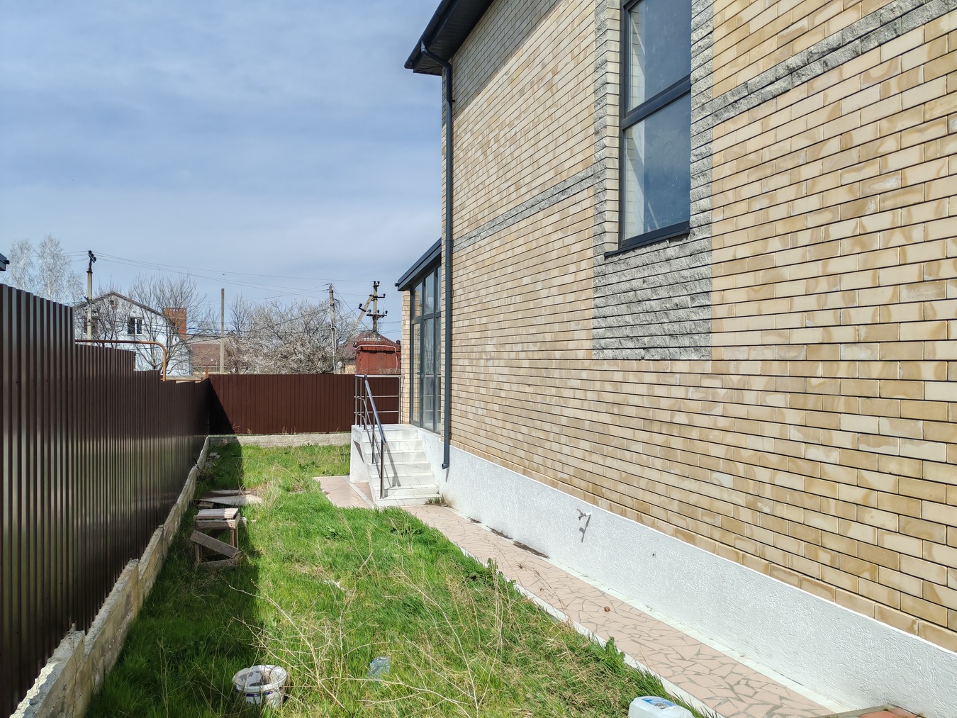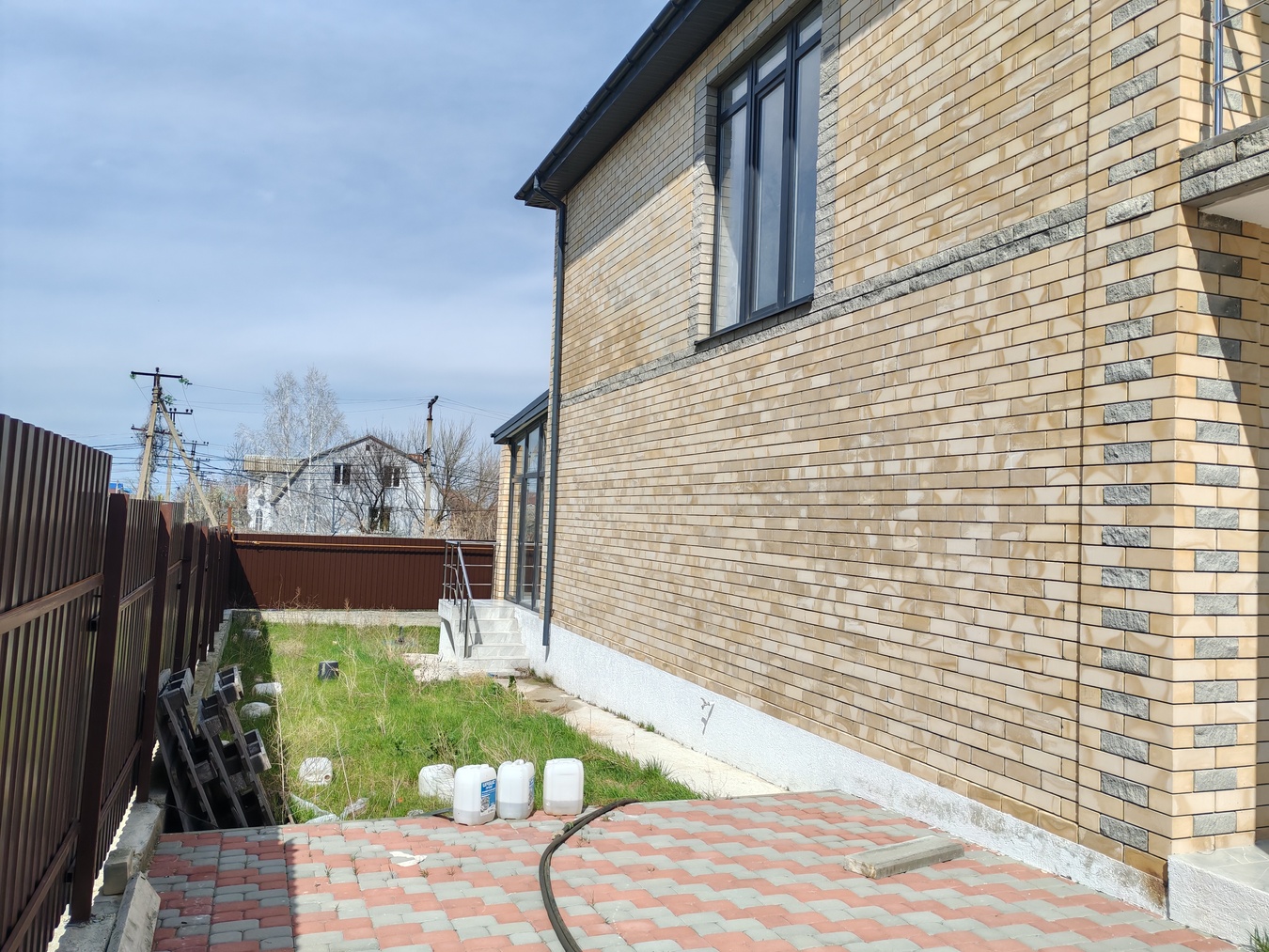 По периметру забор, заезд для машины ролет, двор ухожен и выложен плиткой.