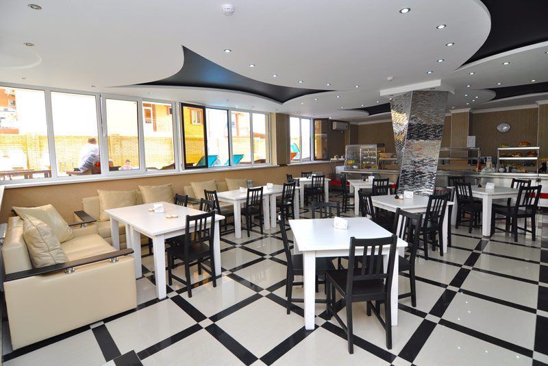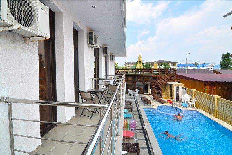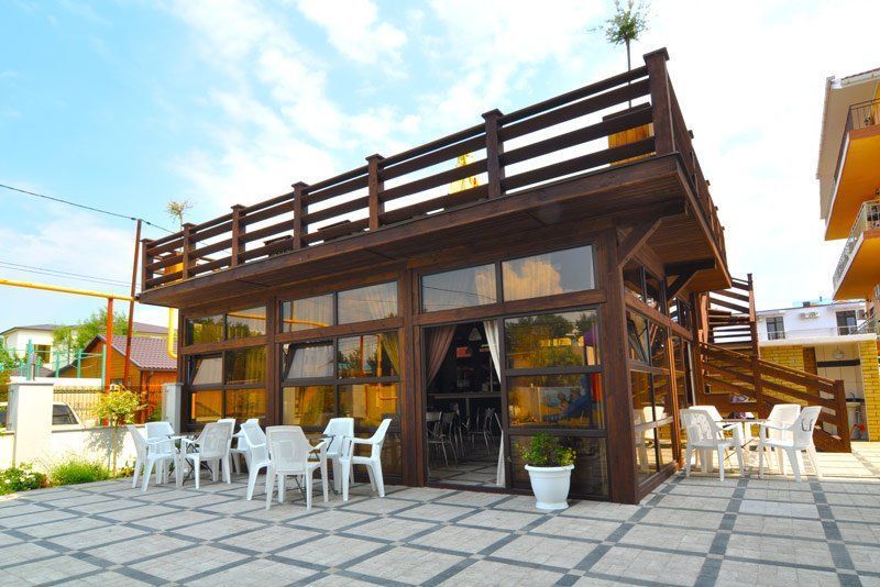 Ухоженная территория с видом на море, 51 комфортабельный номер, Wi-Fi, столовая, бар, бассейн, летнее кафе, детская площадка.