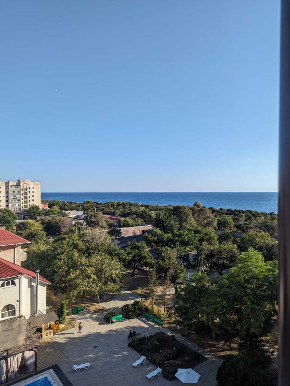 Балкон площадью 6,1 кв. м. является дополнительным пространством для отдыха или работы. С него открывается панорамный вид на море и город, что создает неповторимую атмосферу уюта и комфорта.