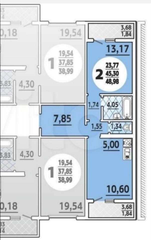 Евродвухкомнатная квартира - распашонка.