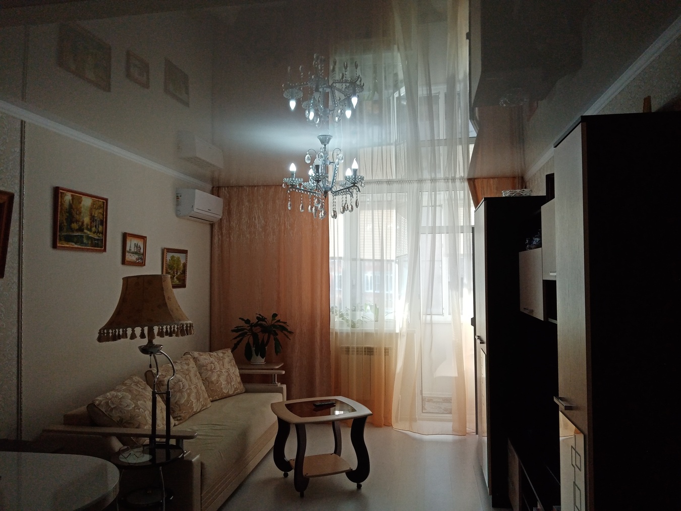 Потолки - натяжные с точечными светильниками везде, включая лоджию.
