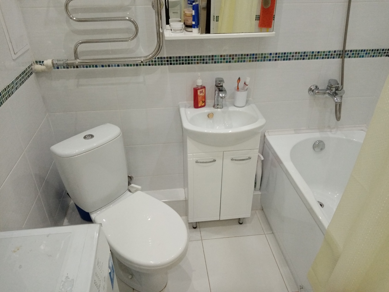 Санузел - стены и полы в керамической плитке.