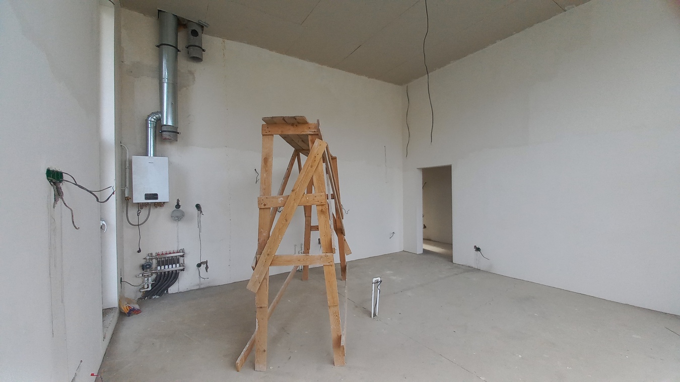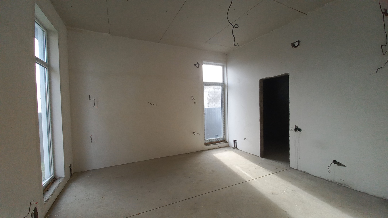 Ремонт: предчистовая отделка: стяжка, штукатурка, разводка электрики. Проведен теплый пол. Установлены стеклопакеты в пол.