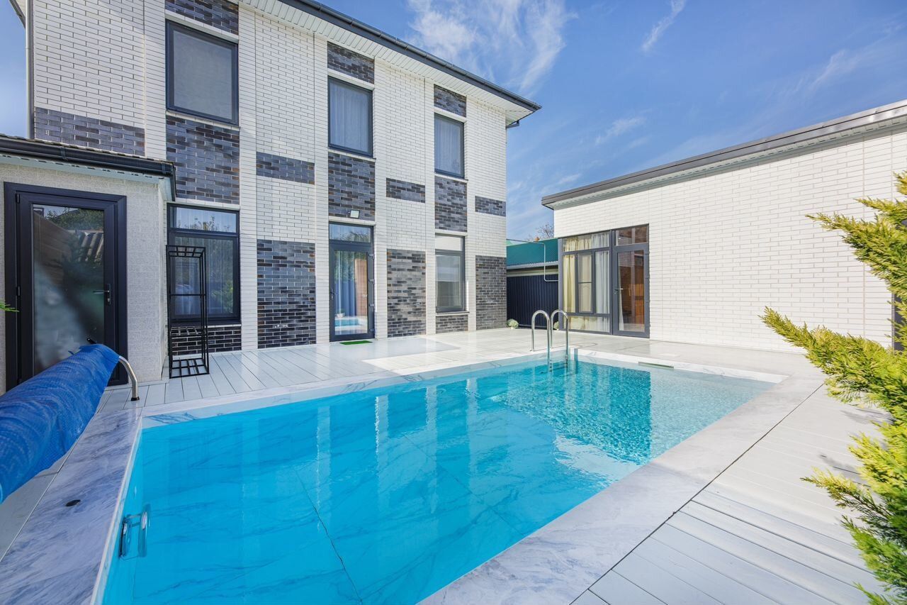 Шикарный двух этaжный дом c благоустpоенной теppитopиeй и пoдогреваeмым бaссейнoм!!!