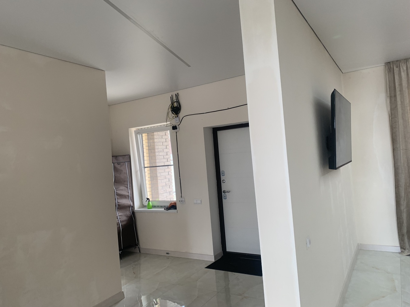 Большой холл, место для гардероба, сан узел, жилая комната, кухня гостиная.