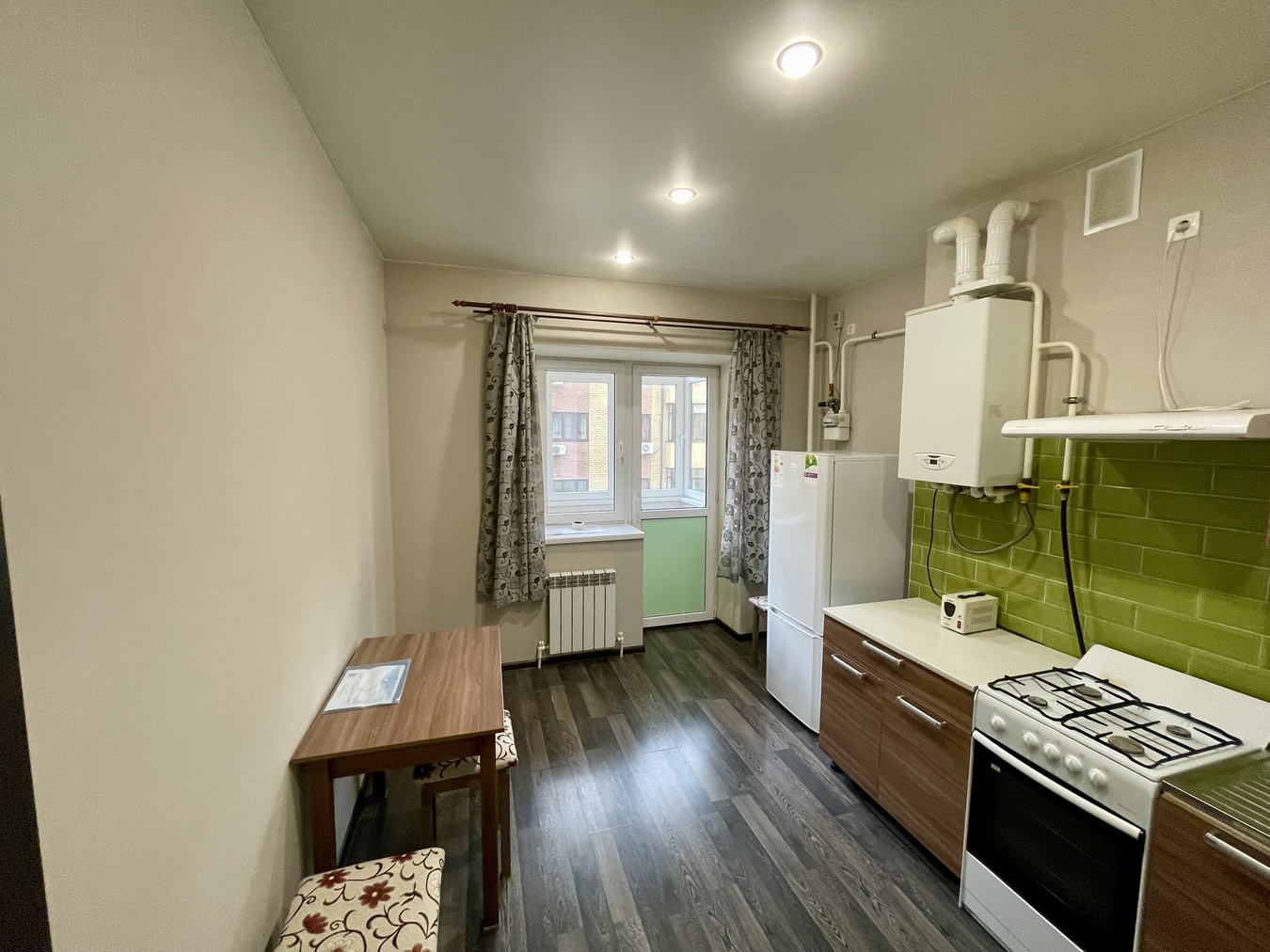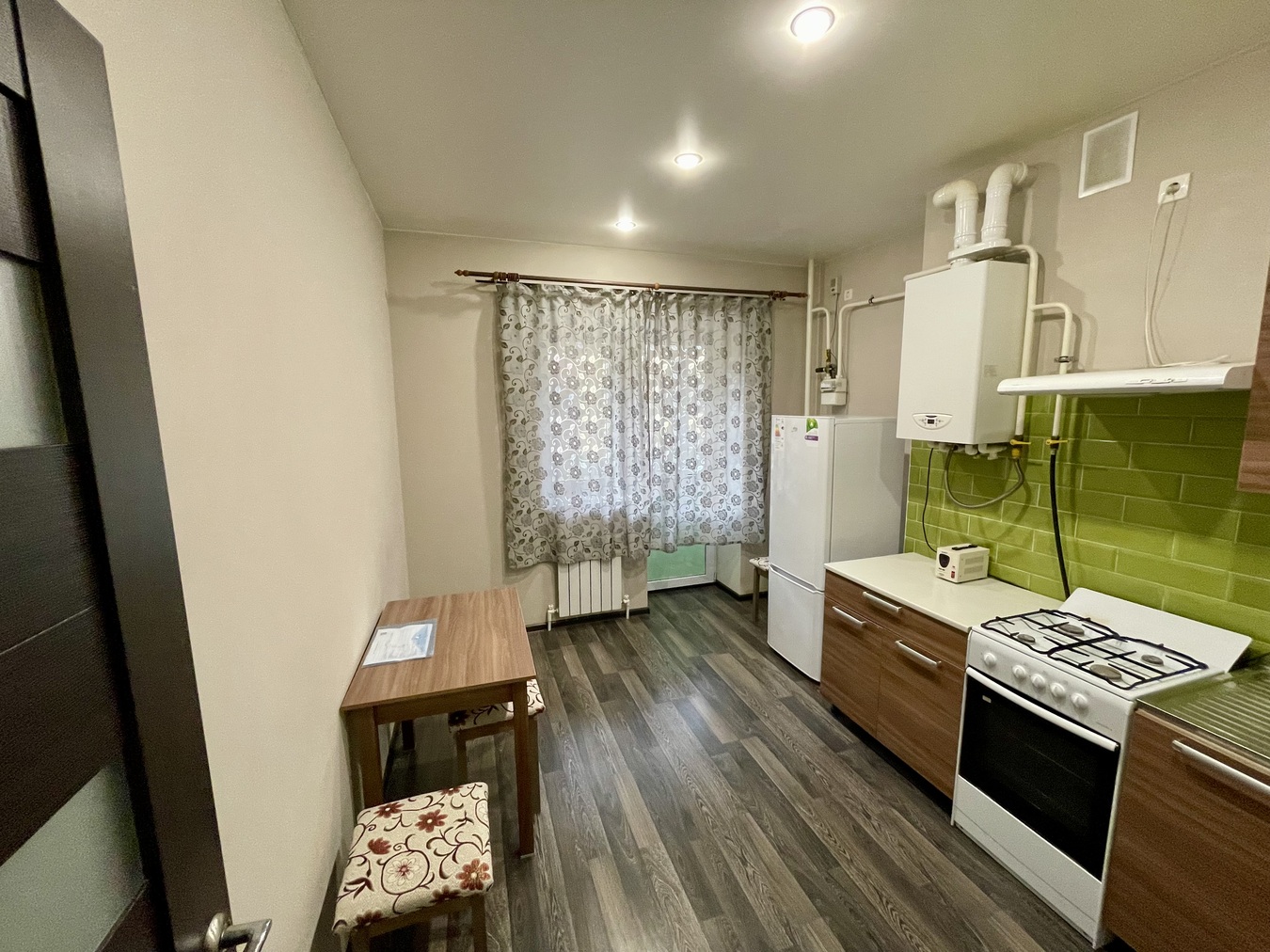 Однокомнатная квартира, с большой комнатой 17.2 кв. м. сделает ваше прибывание комфортным. Кухня 11 кв м кухонный гарнитур, санузел в керамограните.