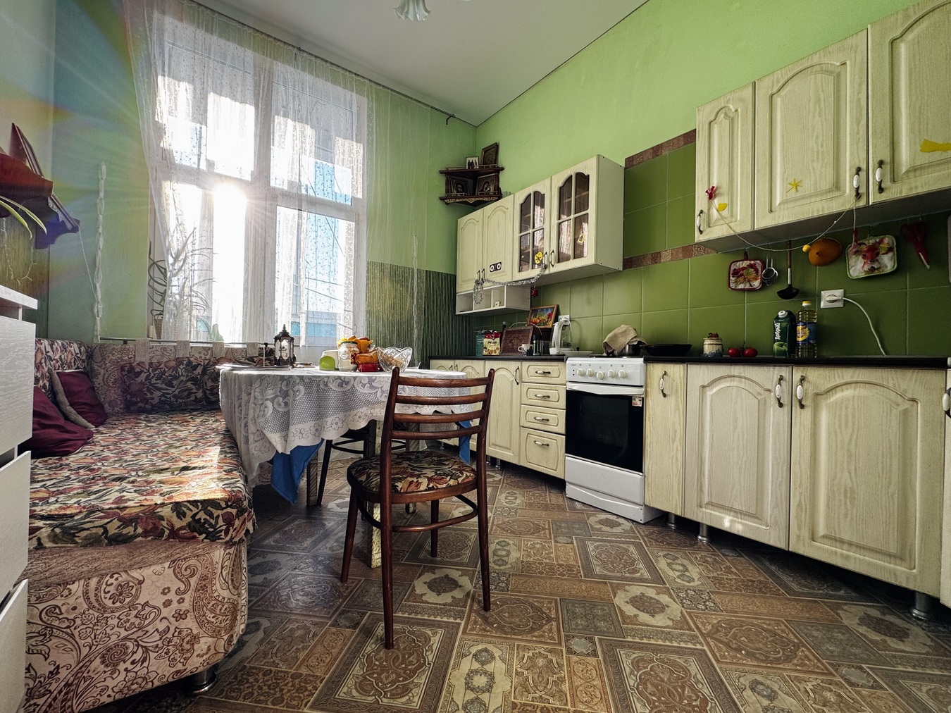 Просторная квартира "распашонка" в "золотом квадрате" Анапы. Удобная планировка: кухня с выходом на балкон, а с другой стороны - комната с двумя большими окнами, откуда открывается шикарный вид на море и весь город. Можно грамотно зонировать и сделать 2 комнаты. Можно сразу зайти и жить: кухонный гарнитур, плита, кровать. Есть видео квартиры. Высота потолков 3,2 метра. Над квартирой есть ещё технический этаж.