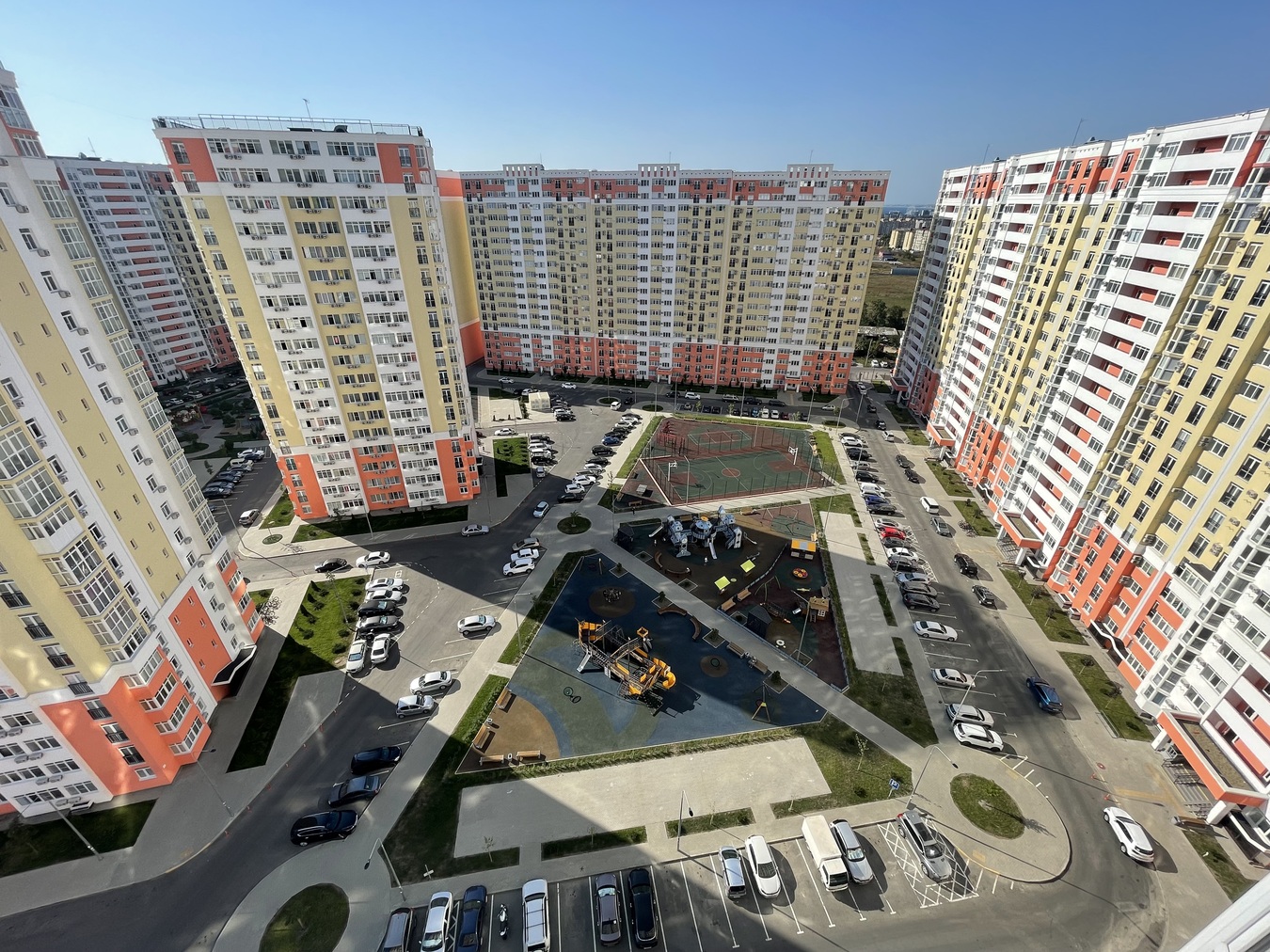 🏀 Большой благоустроенный двор с футбольным и баскетбольным полем, детскими площадками.