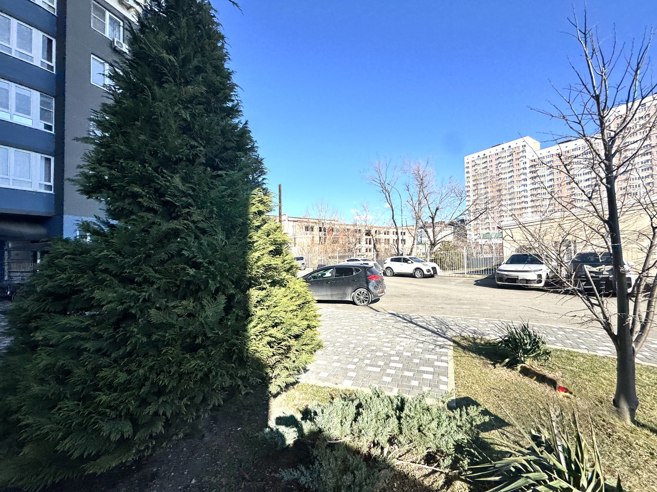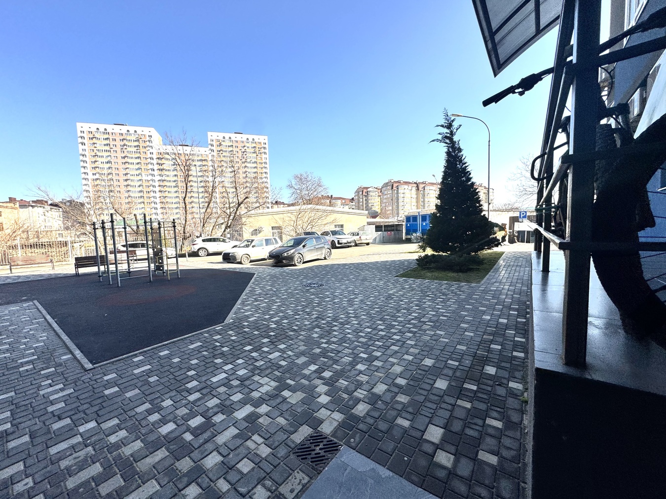 Придомовая территория закрыта, установлены автоматические ворота и калитки с парковкой для собственников и детской площадкой в тени.