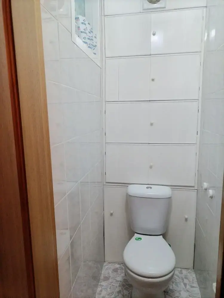 • В ванной и санузле установлены круглые вентиляционные решётки для конвекции воздуха и вытяжной вентилятор.