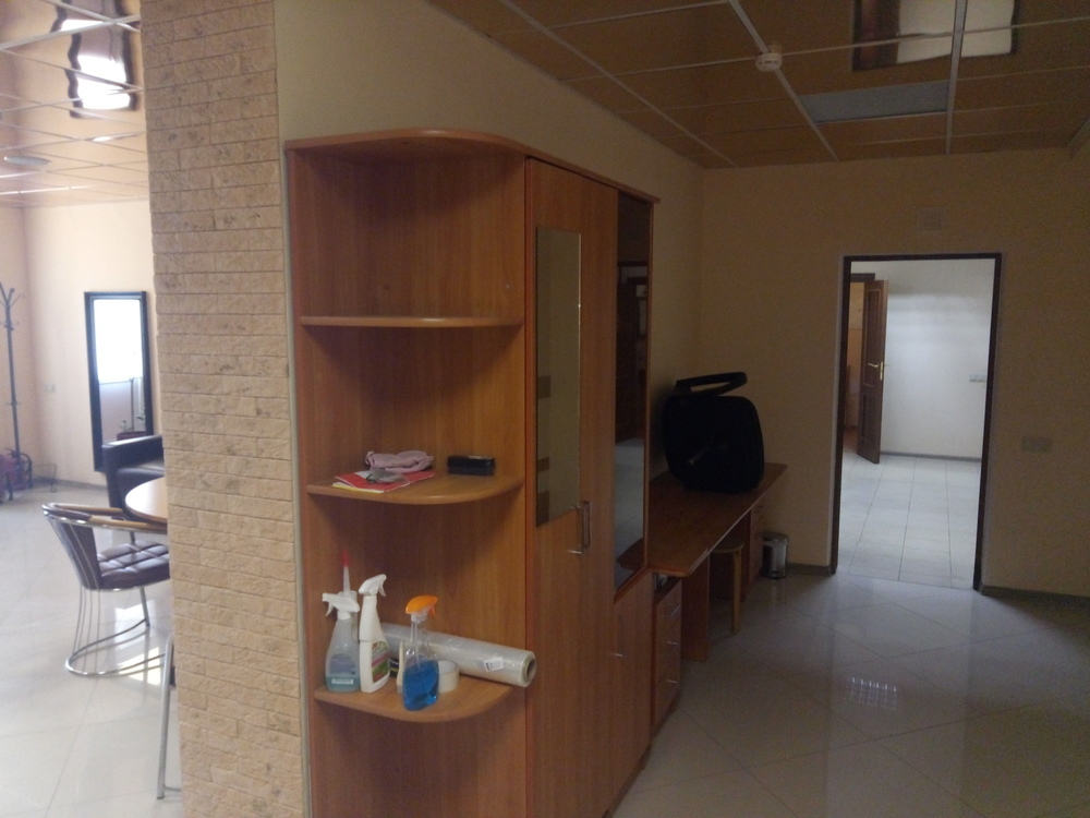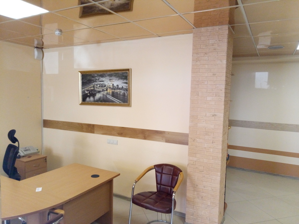 Срочно продается офисное помещение с двумя выходами вдоль оживленного шоссе, дорогой ремонт, мебель! Интернет, стационарный телефон, охрана. Готово к въезду, все коммуникации подключены. Кухня и туалет.