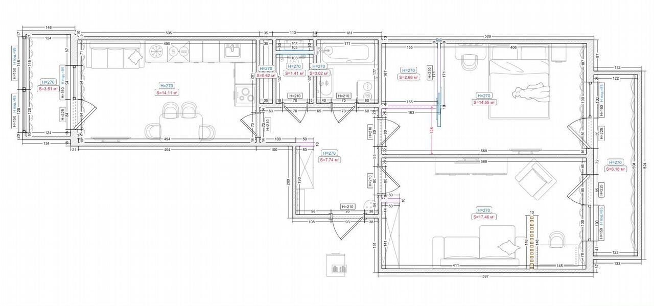 Общая площадь квартиры 70 кв.м.