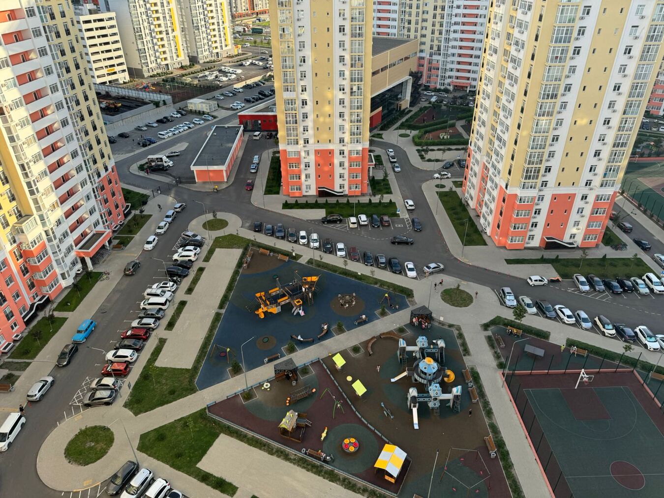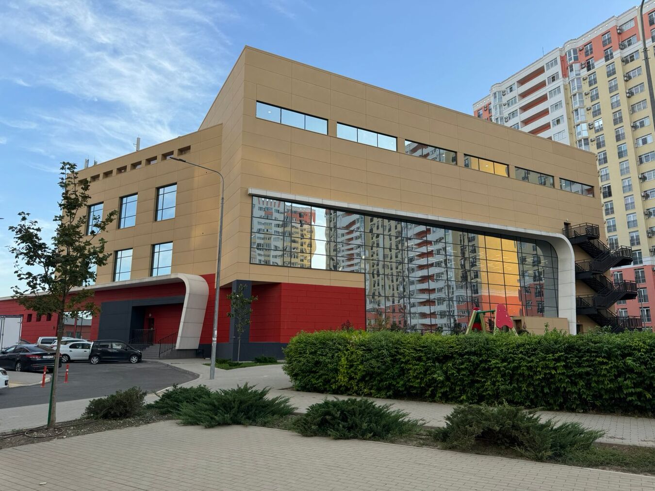 На территории жилого комплекса находятся детские и спортивные площадки с безопасным покрытием. На первых этажах расположены магазины.