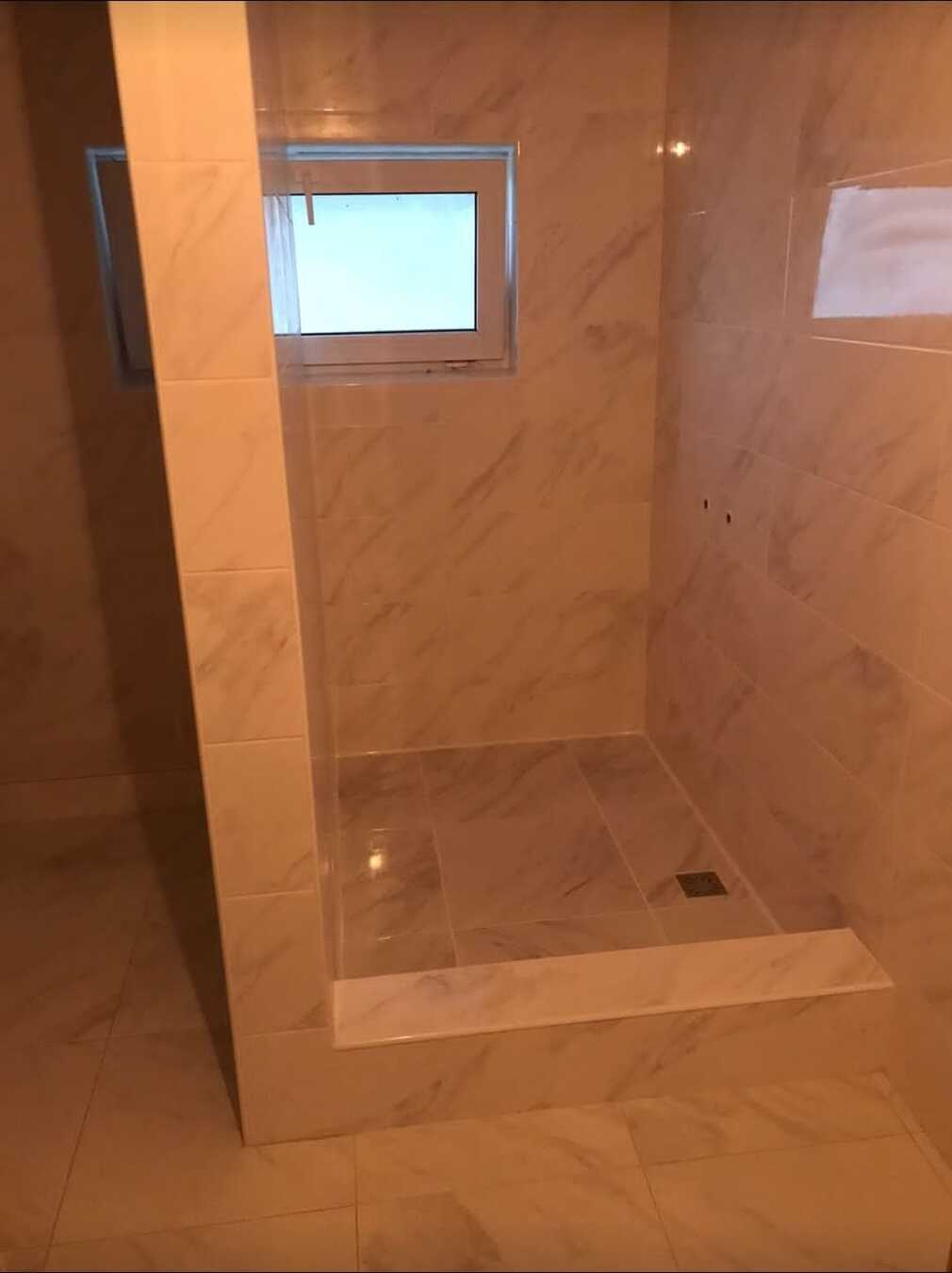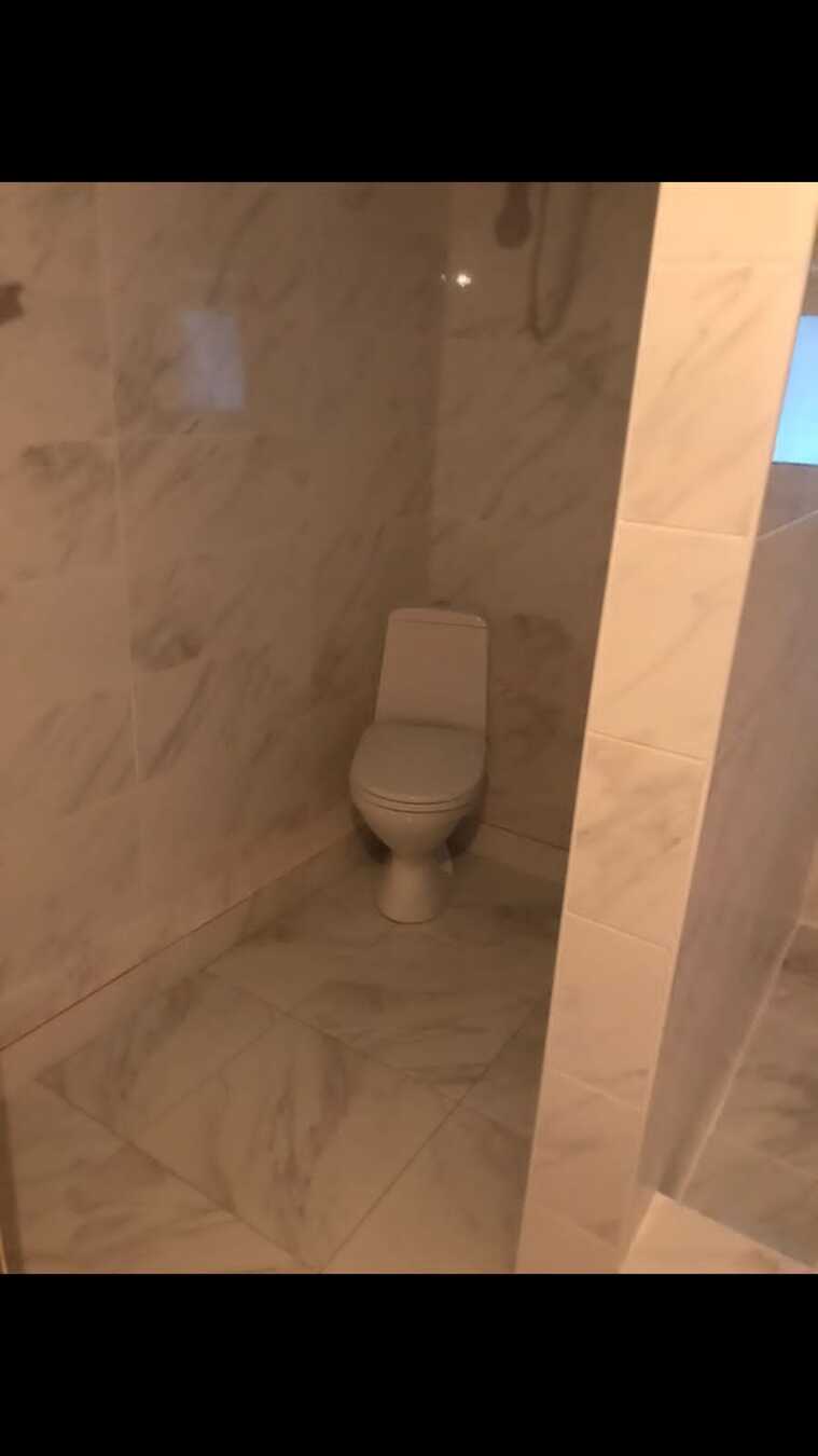 В сан.узеле закончены работы по укладке половой и стеновой плитки, установлена сан.техника.