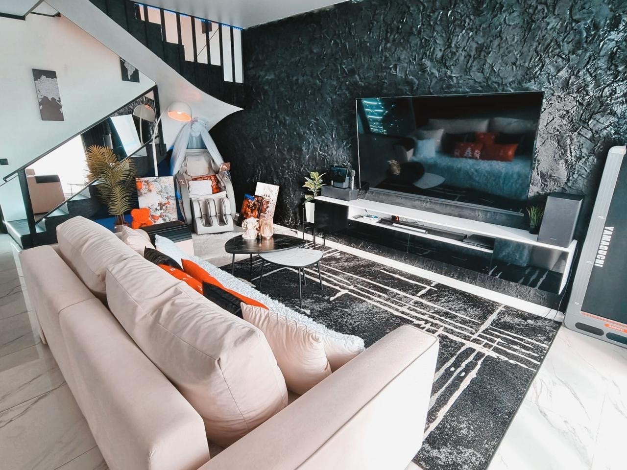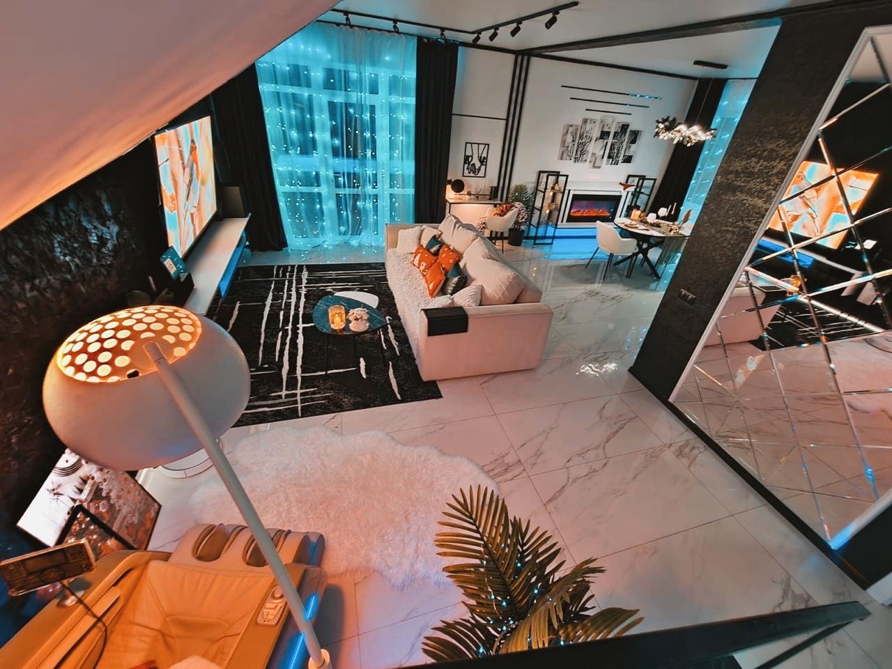 кабинет с игровым ПК, спальни с гардеробными, раскладные диваны, луна-светильник.