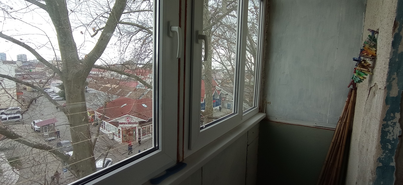 Квартира по планировке - распашонка, окна выходят на обе стороны дома.