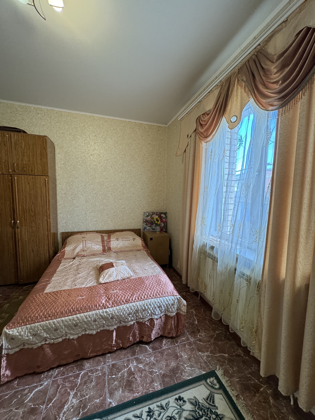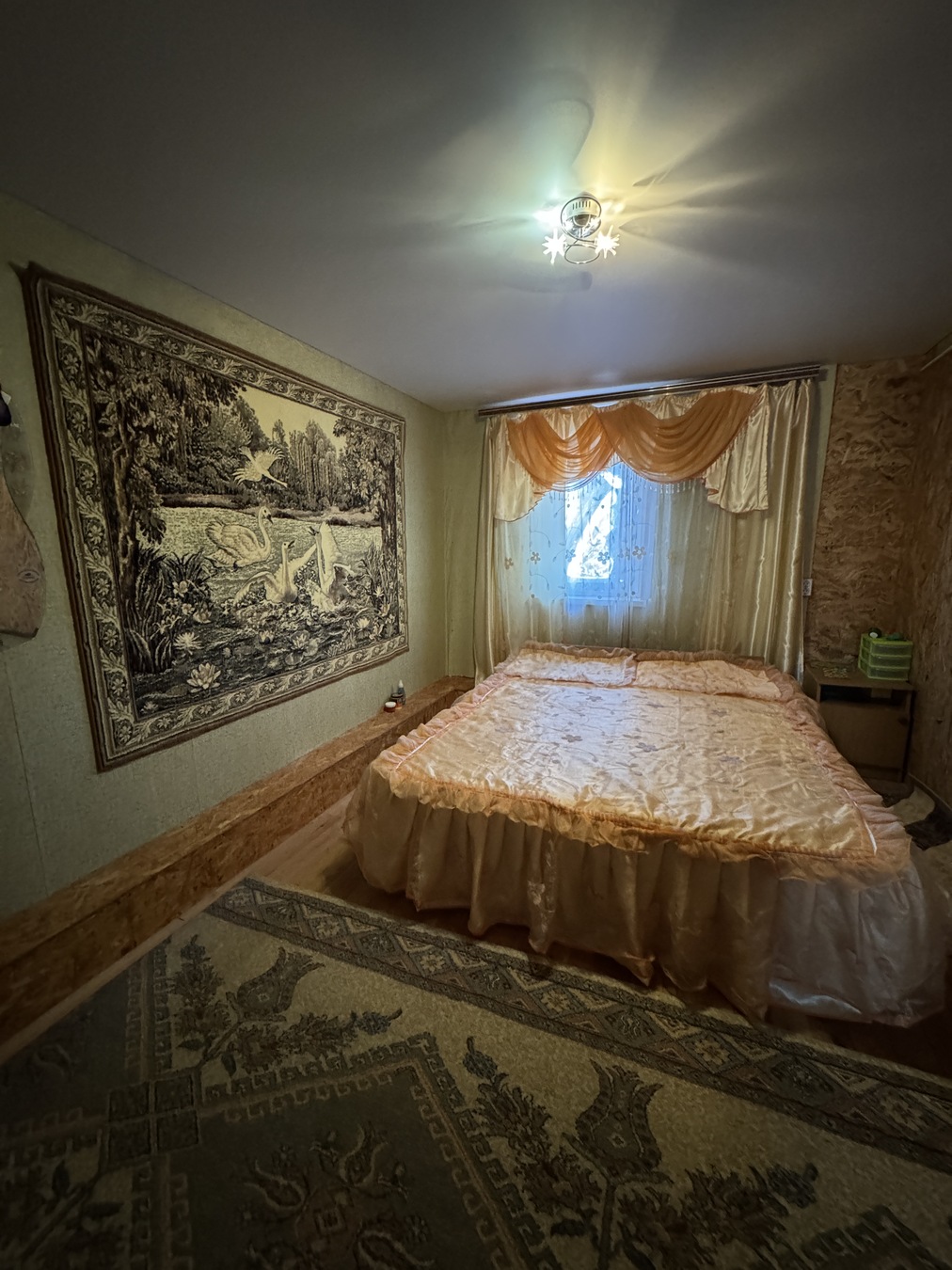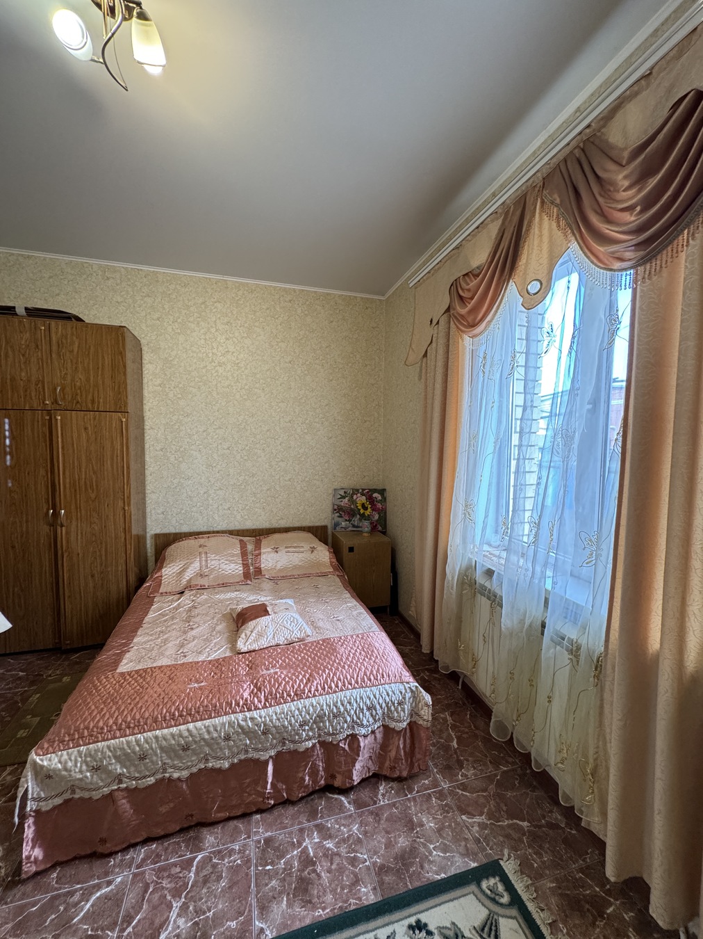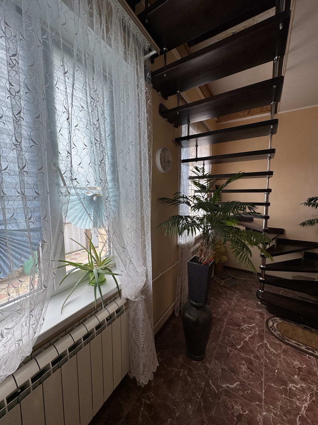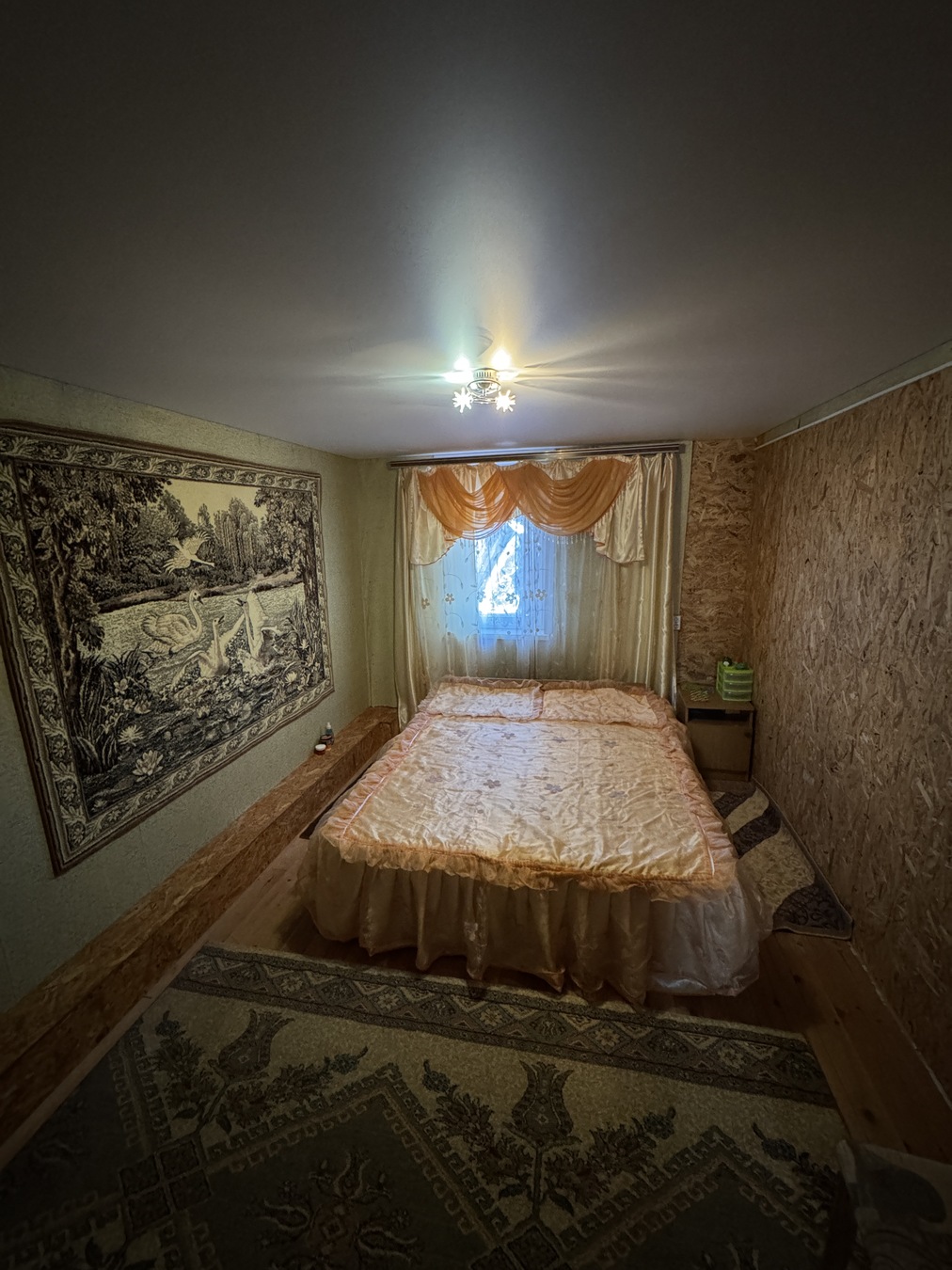 Большая кухня столовая, зал с высокими потолками ,на первом этаже две раздельных спальни и на втором этаже 2 раздельных спальни.